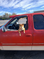 Felony is very well trained, obeys very well, has a routine schedule that She follows very well. Felony rides in my truck sticking her puppy face out the window safely while harness tied to the inside of the truck to make fellow people in traffic make a double take to see her face and they want to communicate with her at stop lights!! Felony is a Minature Shiba-Inu -- just the perfect size, shape, color, and attitude to be my perfect America's Pet!! Felony brings joy to everyone she meets!!