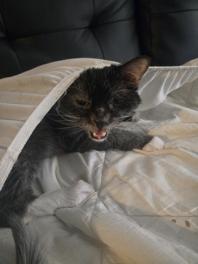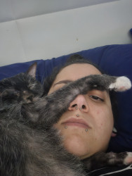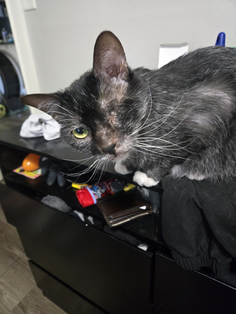 Fenriz loves butt smacks and sitting in places he shouldn't. He is a lykoi, very rare and very cute. His meow sounds like a melody 💓