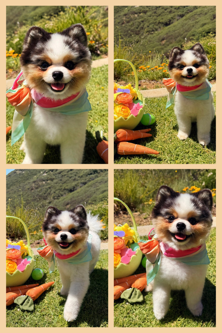 He’s full of personality and is crazy smart, tell him to stop barking, he will low growl. His colors and markings are also very unique for a Pomeranian, and people rarely believe he is one.