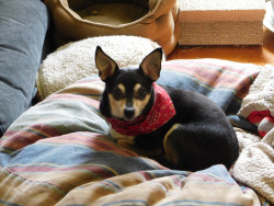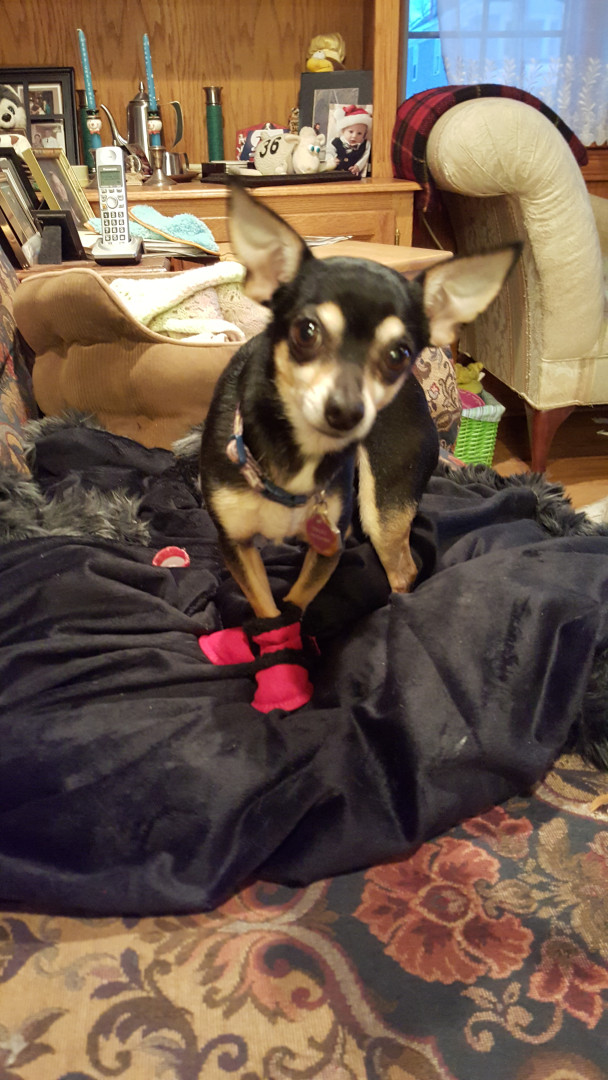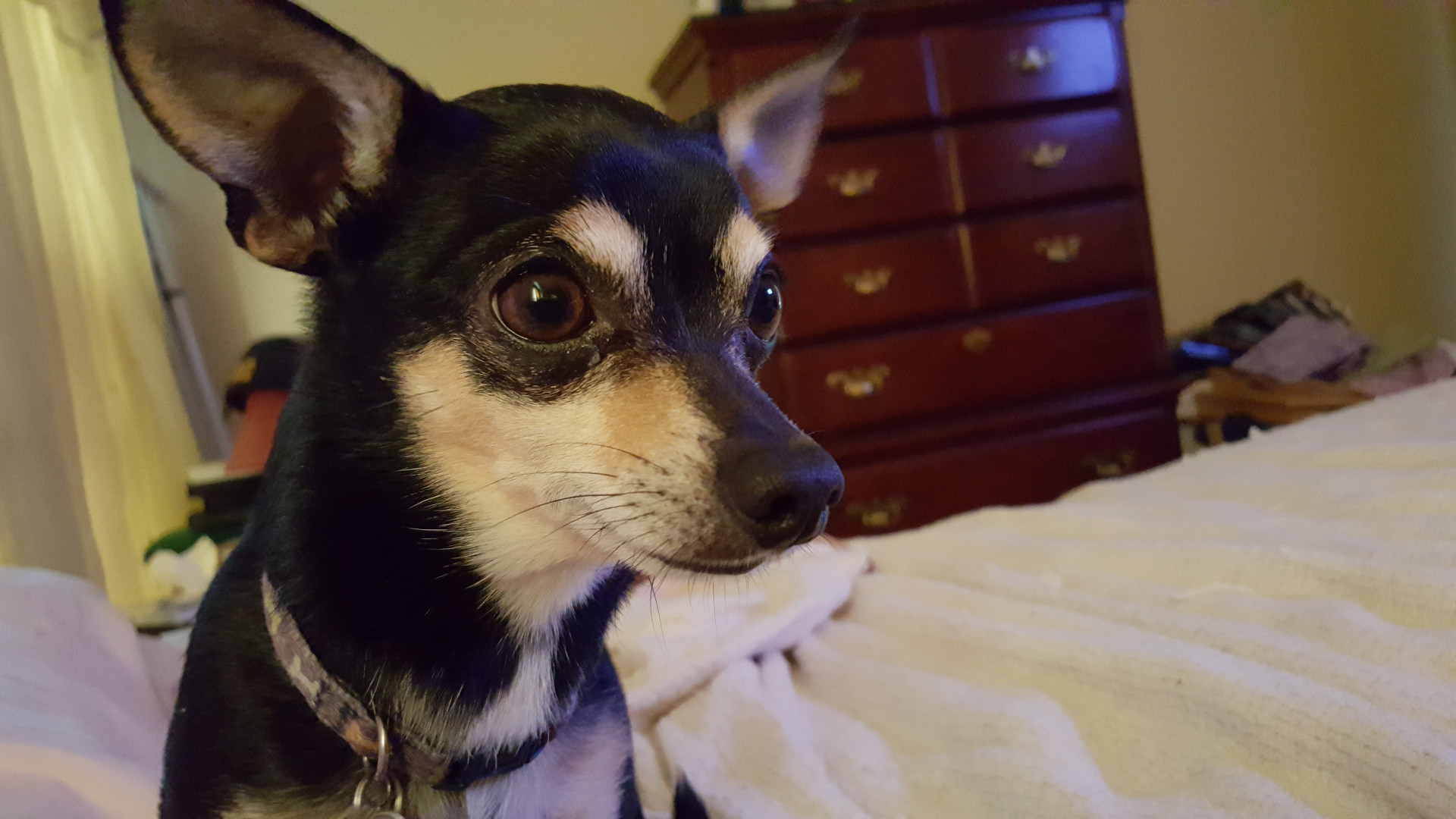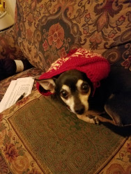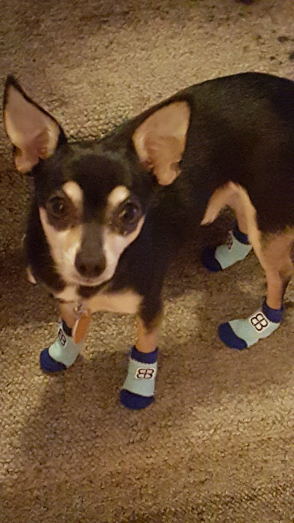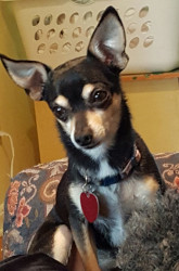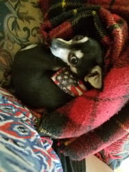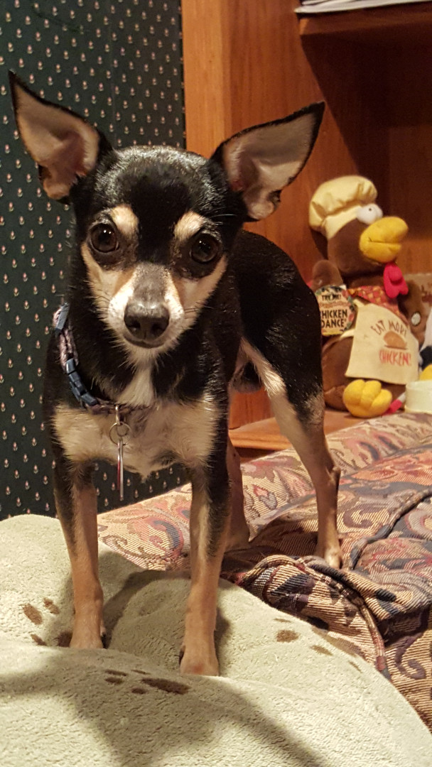 He is a very stubborn chihuahua. He insists on being on my lap. He is sweet & loving. Finley is a momma’s boy.
