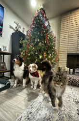 finn is a gentle giant with a hint of spice. always down to cuddle or play with his three Australian Shepard’s. 20 lbs of pure floof!