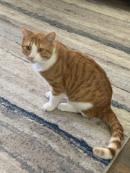 Very spontaneous, fast, loves to play. Likes his cuddles. Very handsome boy. Likes to pick on other cats. Enjoys life