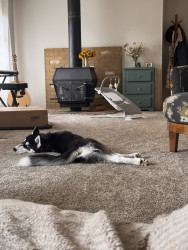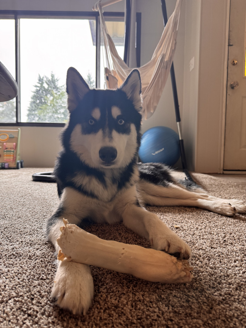 His favorite treat is rawhide. His favorite toy is quite literally our backyard. He is like a goat. He will sit in bushes, he will stand against a tree reaching for high branches and so many other silly things.
