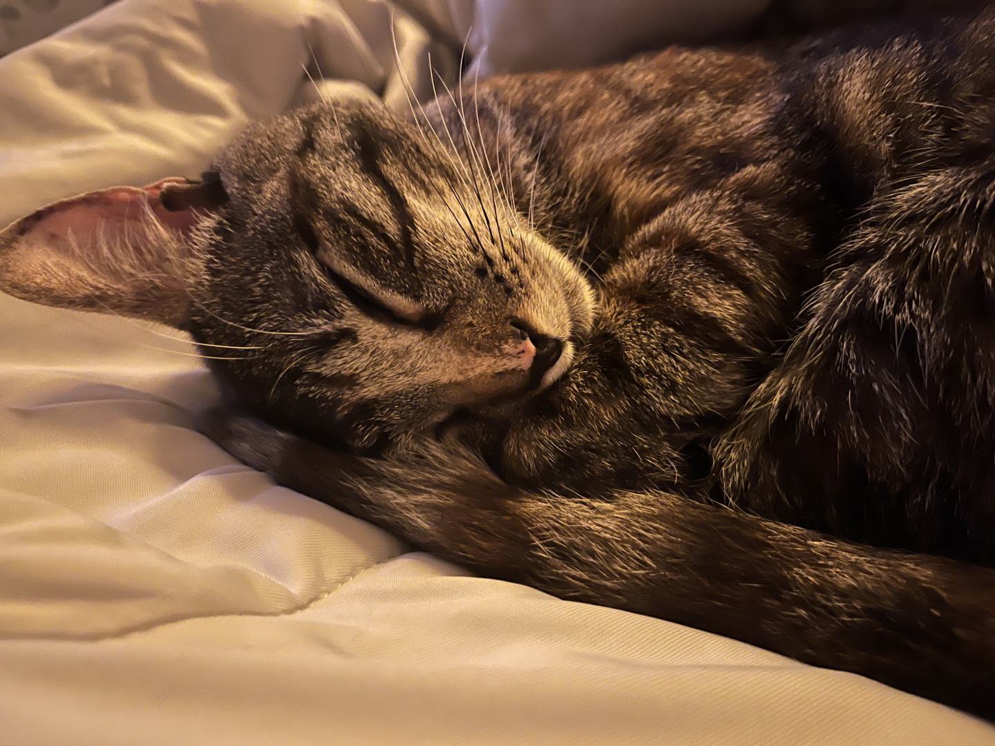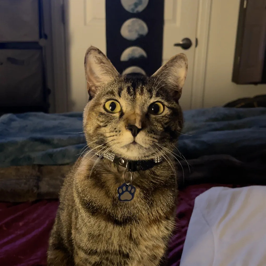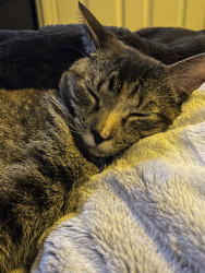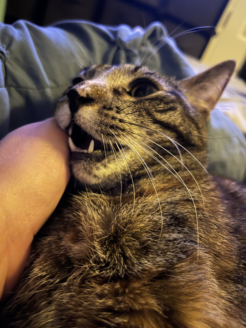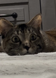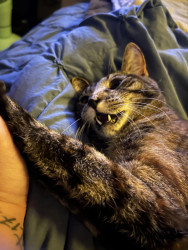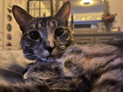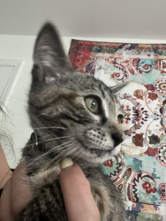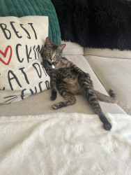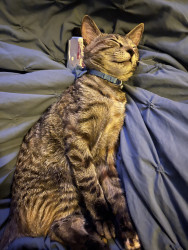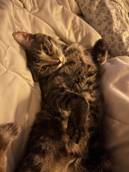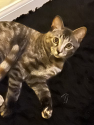 Our 2 yr old Tabico cat Finn is one of the happiest cats I’ve ever owned. He’s gentle, talkative and very playful with a huge personality.