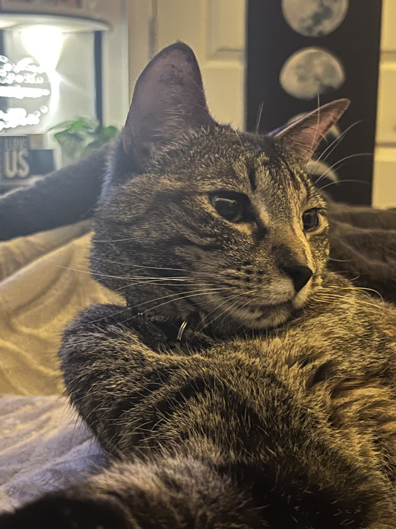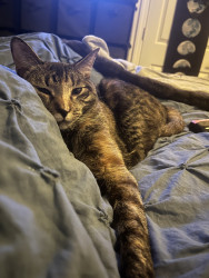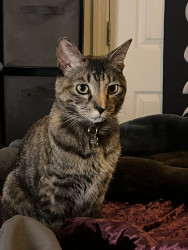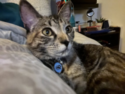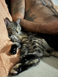 The most unique quality is that he’s a Tabico. Half Tabby and half Calico. Most Tabicos are female. So he’s definitely a rare breed. He answers to his own name and comes when you call him.