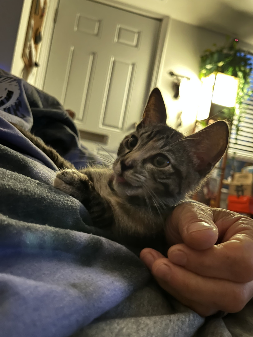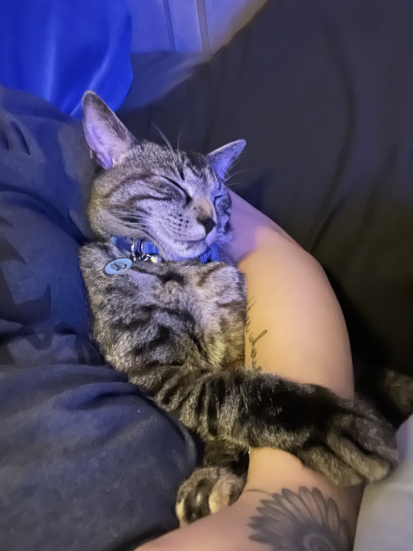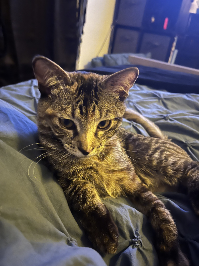 Finn is a lovey type of cat. He’s beautiful and a happy little guy. He’s everyones favorite in our family… why not America!?