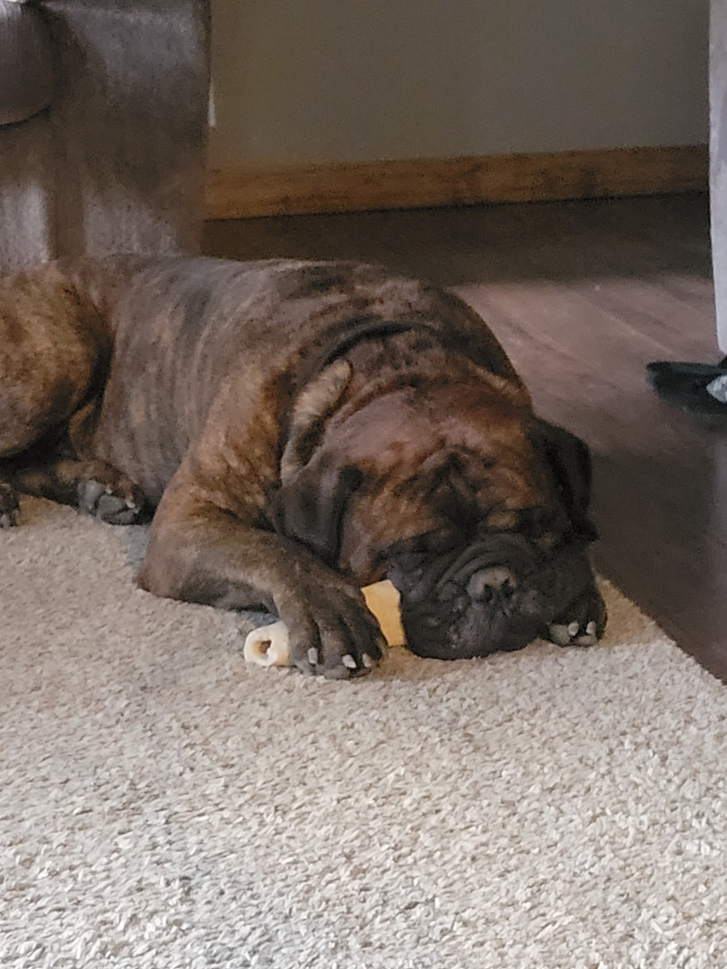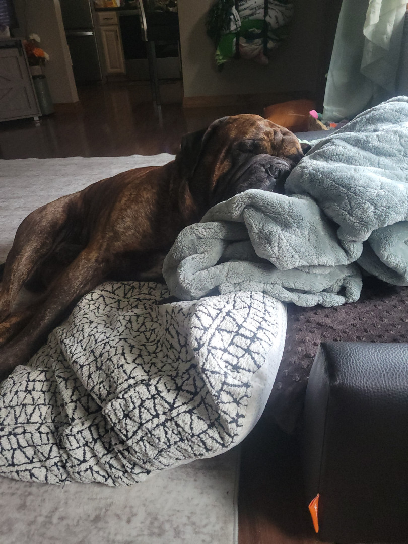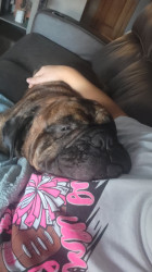 Finn is the absolute best gentle giant. My bull mastiff is funny, sweet, always tired, spoiled rotten and a big cuddler He's my best fri