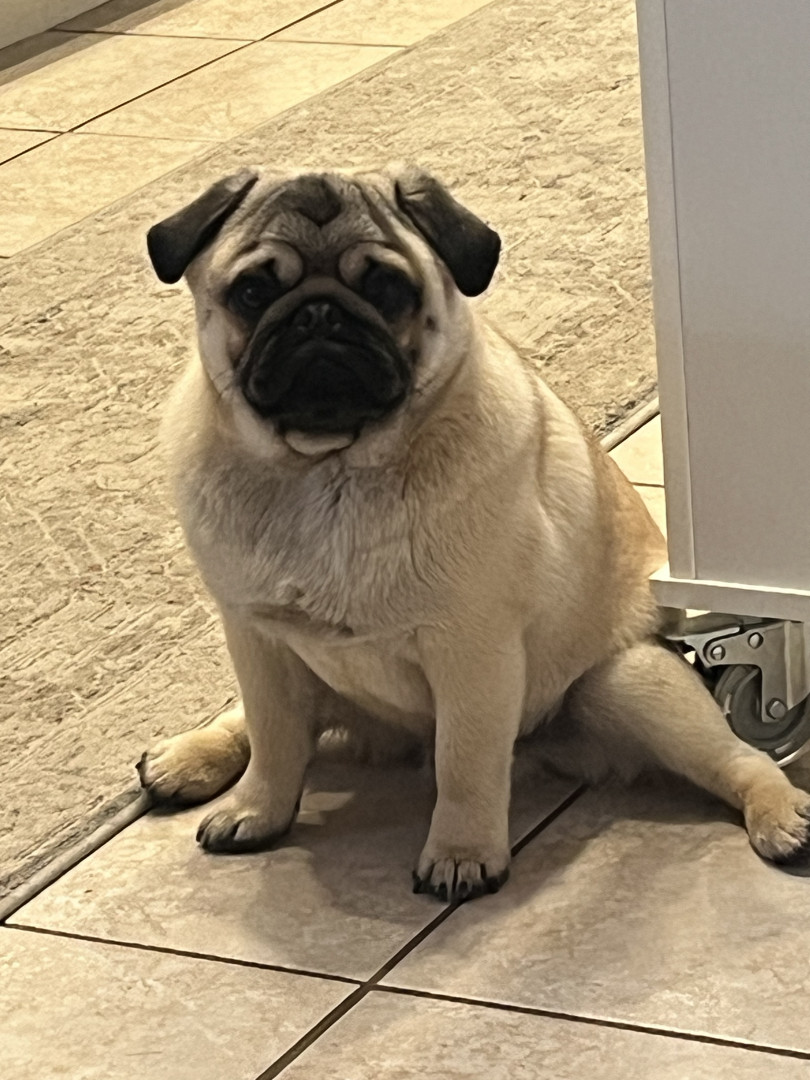 He is just the sweetest looking dog. It doesn’t matter where we go with him the store, the park or the vet, he attracts attention and people will stop dead in their tracks to visit him, hold him and love him up. He will return the love in kisses.