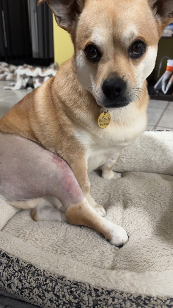 Finnley should be americas favorite dog because even through Parvo, a tumor, and ACL knee replacement- he is still such a happy dog. Finnley was born on the streets in the south and brought up to rescue, where we adopted him 4 and a half years ago, when he was only 6 months old. He has fought through Parvo & 2 surgeries. When we go anywhere with Finnley, he steals the show and wiggles his tail to invite all the love !
