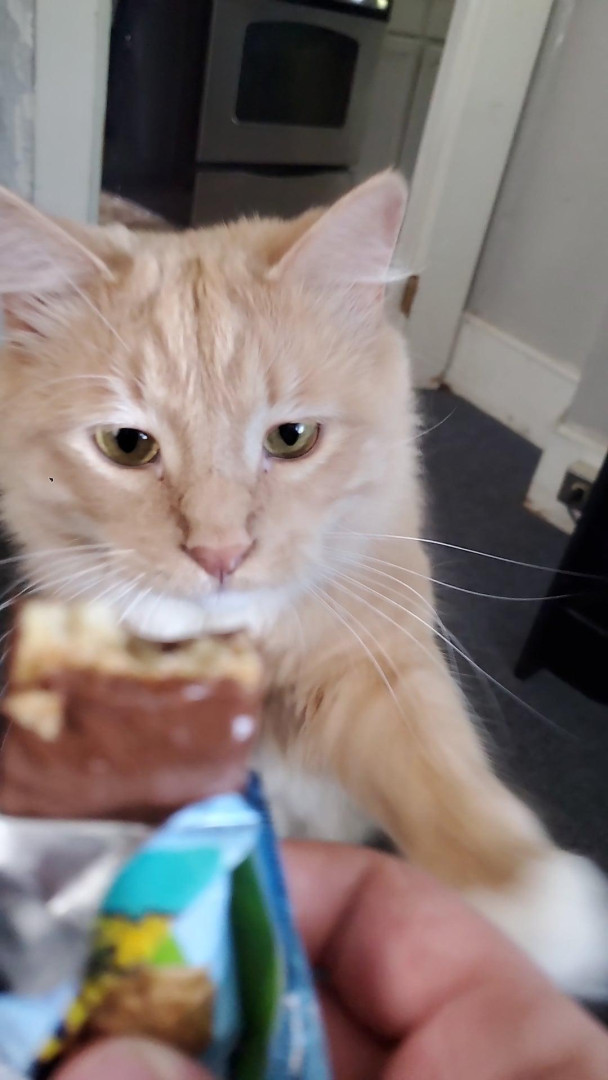 Learn MoreFish's favorite toy is his fishing rod with the French fry on it, he will hook his claws into it just like a Fish would bite onto the line. His favorite treats are temptations and he will sit, paw and boop for them.