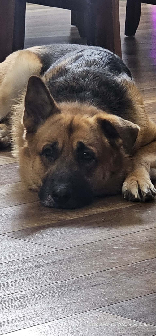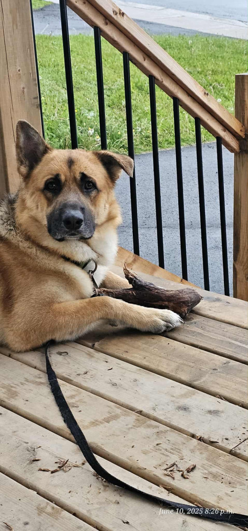 Flavien a German shepard mix with huskey and lab. His gonna be 2 years old pretty soon. We coudn't ask for a better dog