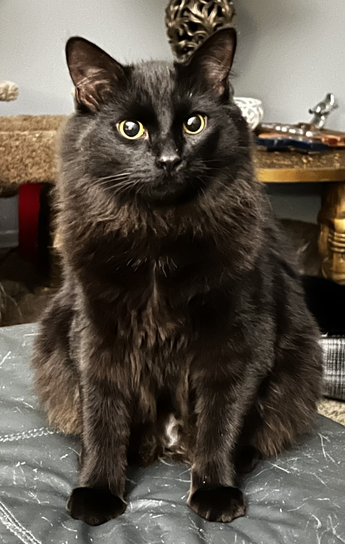 Floki’s unique quality is his abnormal long thick luxurious fluffy tail!!! It is far bigger than his body and bigger than most other breeds. His personality and his way of communicating with us. He doesn’t meow, he chirps and will stand on his hind legs with his front legs stretched up for us to pick up like a baby. He acts like a human child and understands what we say.