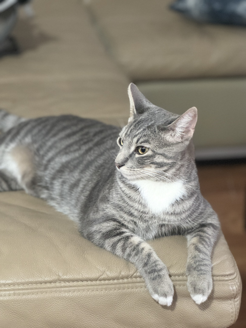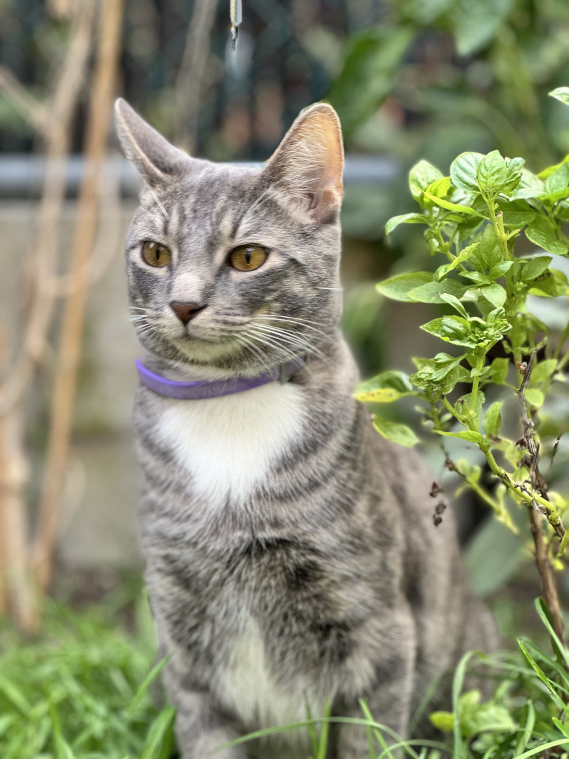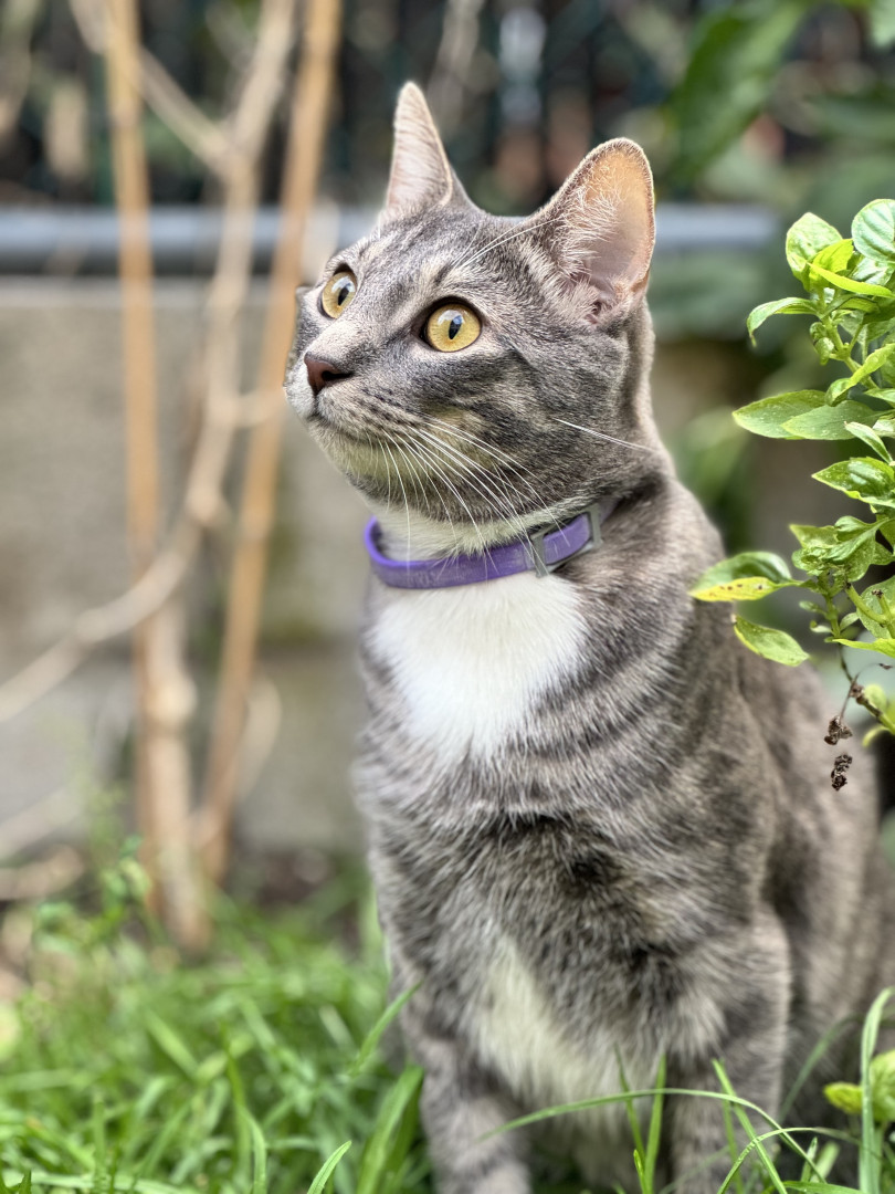 Floki’s most unique quality is his big, generous heart ๐บ๐ He loves to share his food with his orange stray friend and his tabby cousin, Brooke. He’s very chatty and always has something to say, especially after supervising the backyard and watching the garden crops. Once he’s ready to come inside, he politely meows at the door. He enjoys his alone time but truly shines during playtime—playing fetch and proudly bringing the ball back himself ๐พโจ