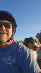 Floki is a bundle of excitement! He is up for any adventure from riding on a motorcycle, hiking, kayaking, boating or catching frisbee.
