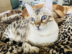 Floki’s most unique quality is his loving kind heart. He is also a rare coloring of Bengal called a Snow Lynx Point. They always have blue eyes!