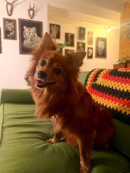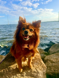 Receive Text UpdatesShe loves any ball or cat toy. She carries them around all day! Her favorite treat is fresh or saltwater fish. She loves cobia and catfish specifically. She will bark and spin around until she gets a bite.