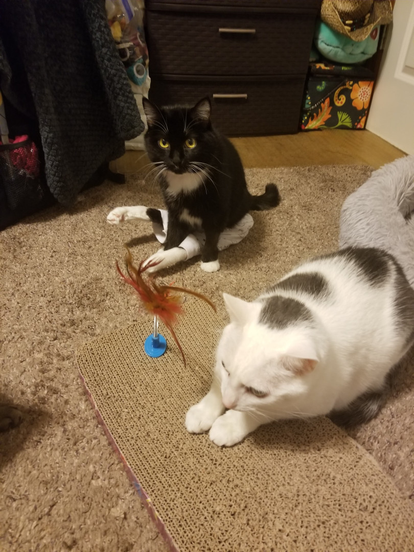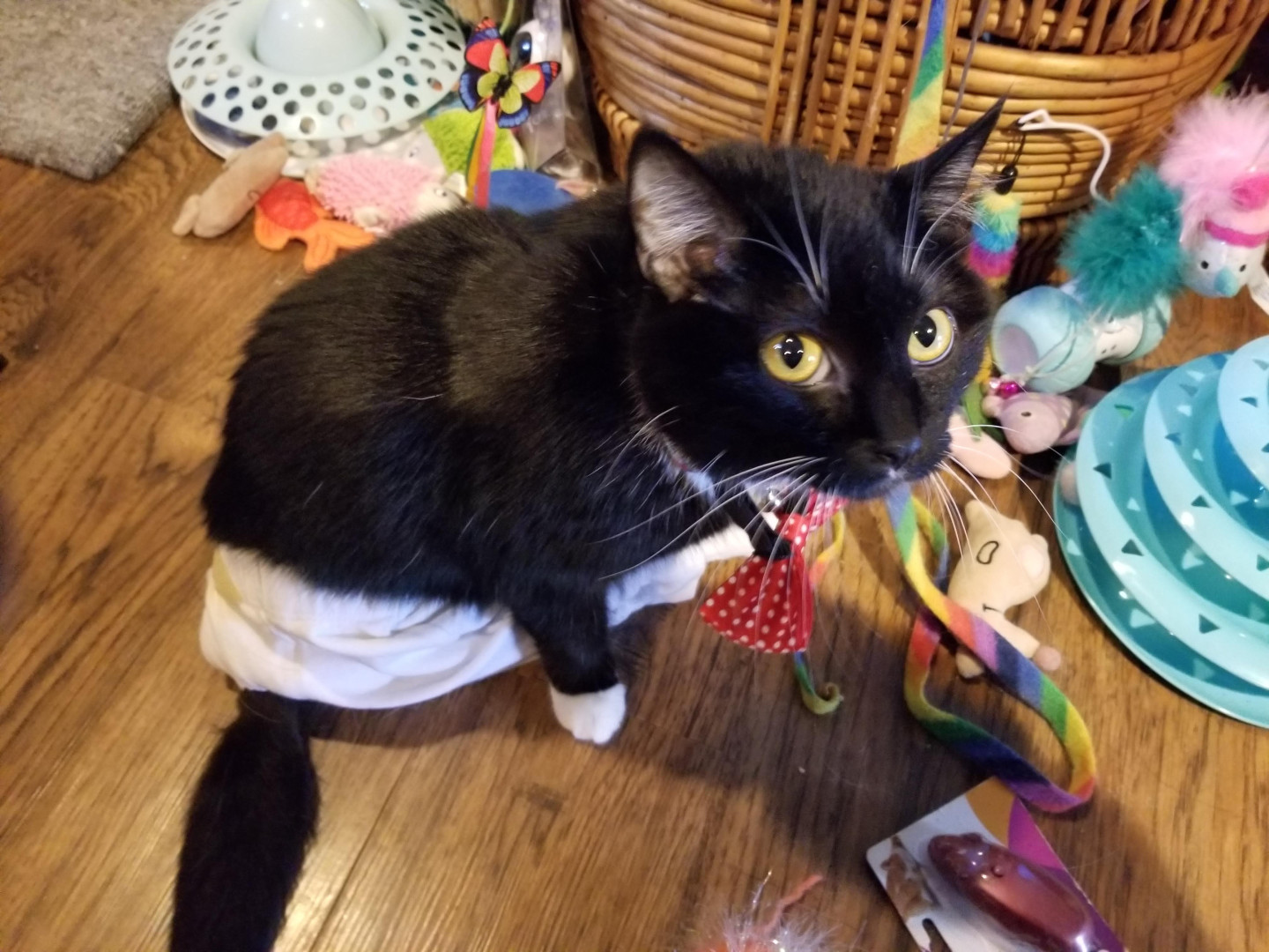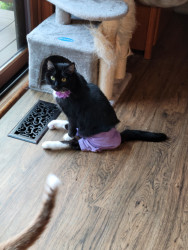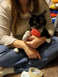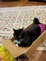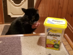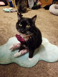 Receive Text UpdatesFlower loves to play with kick sticks, rainbow sticks & a toy that has a fluttering butterfly going around in circles! Flower loves Temptations Treats. All you have to do is shake the box and she comes scooting over!