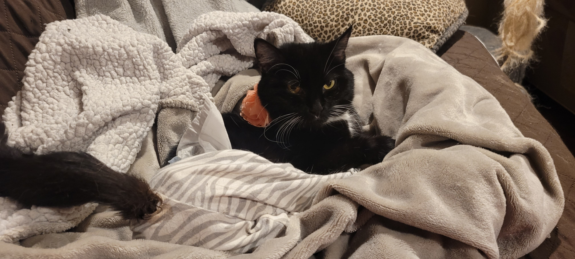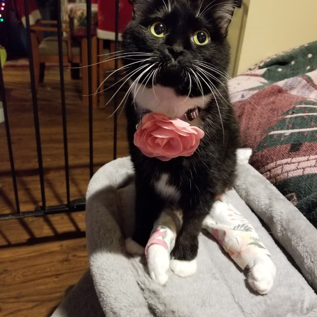 Flowers' most unique quality is her perseverance and desire to be as much of a normal cat as she can be. She never lets anything stop her and she inspired me in a time when I needed it so bad. She has these big, beautiful eyes that can melt your heart in seconds.