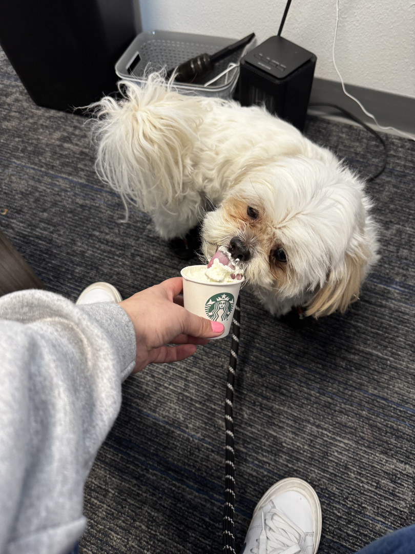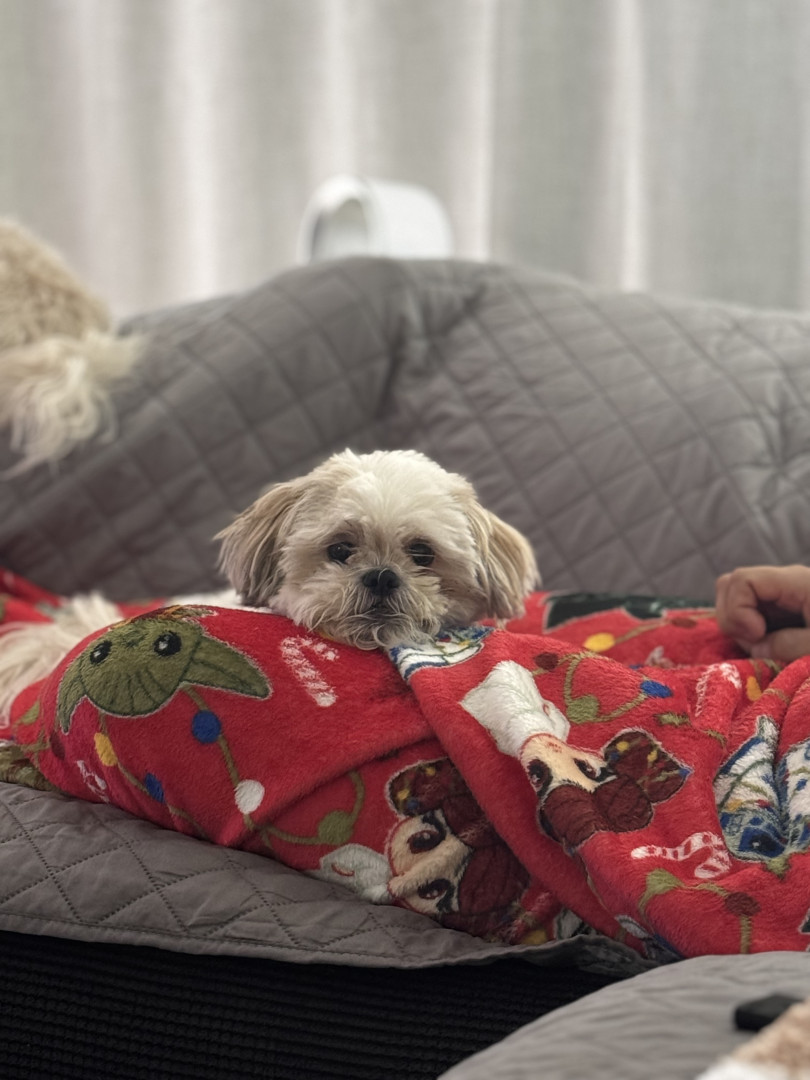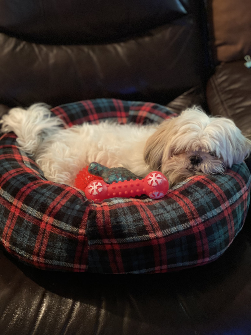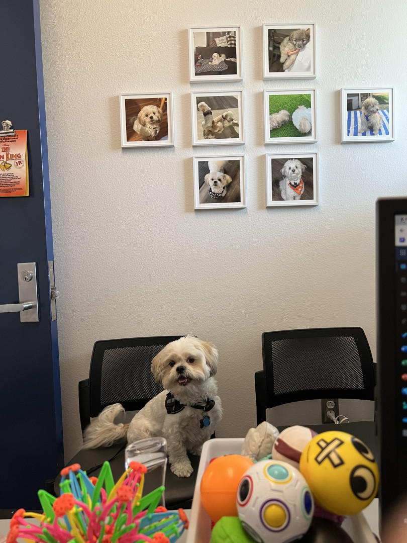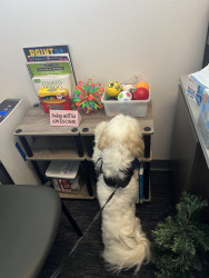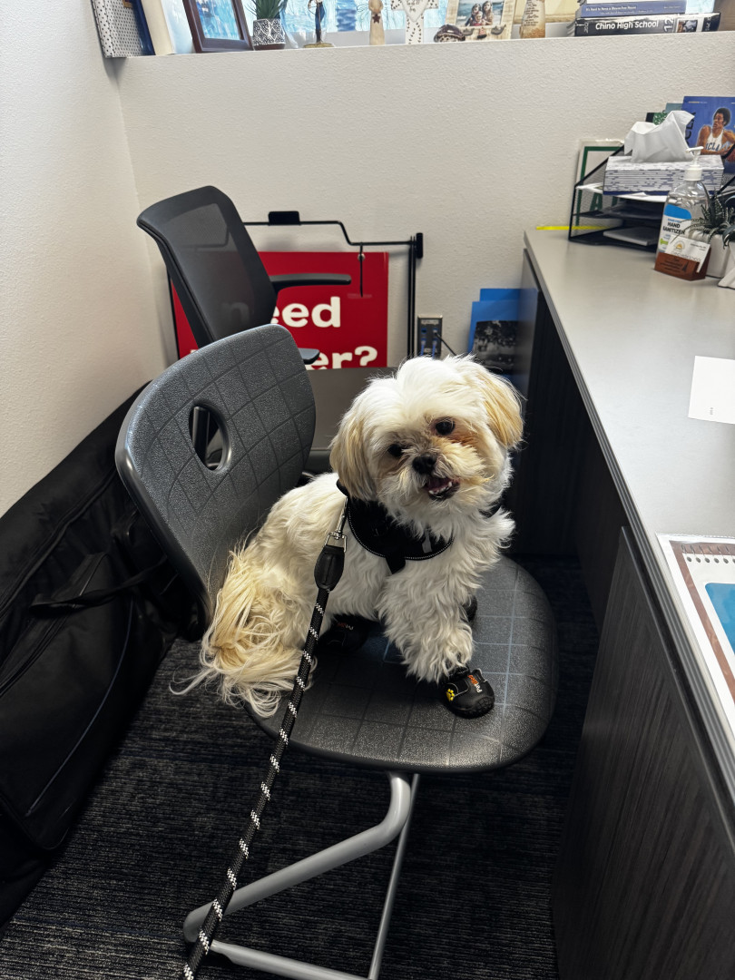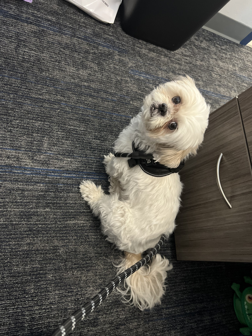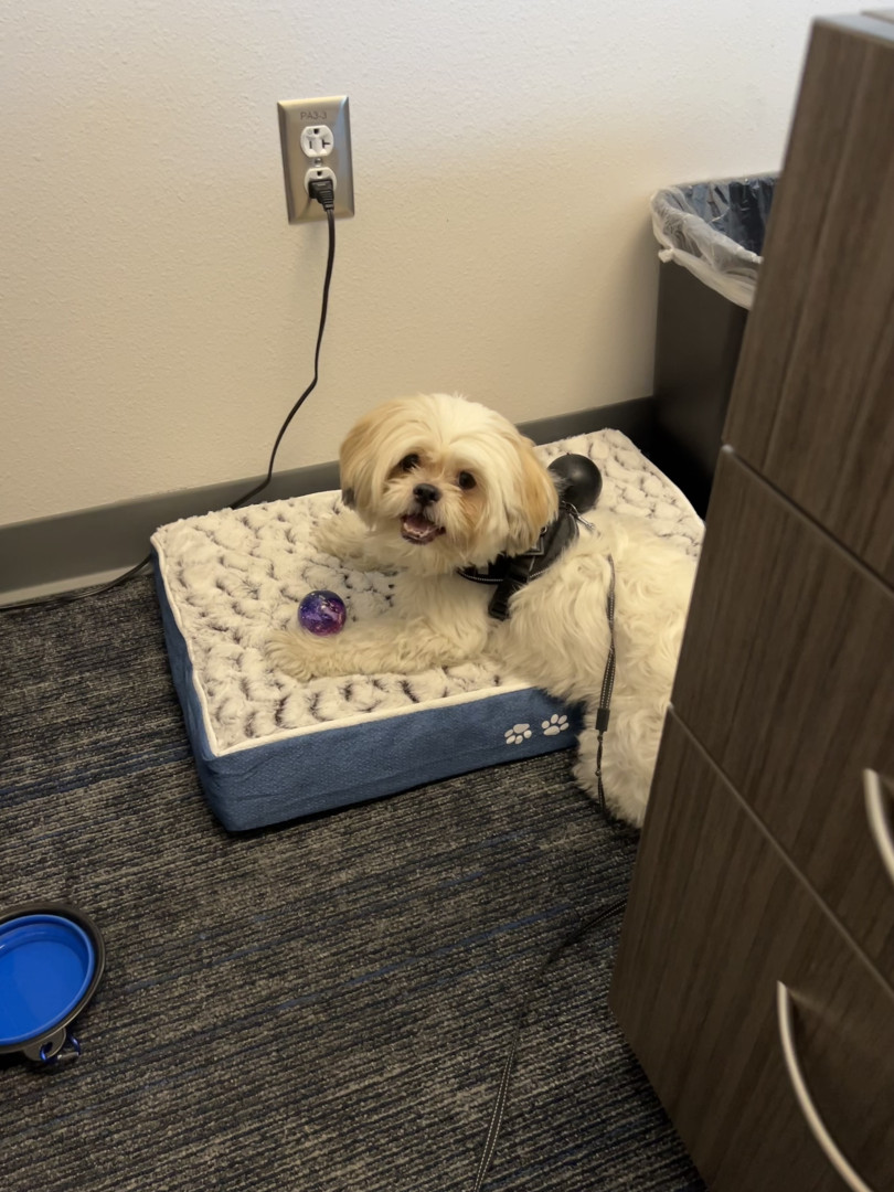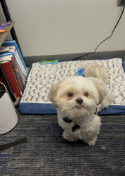 Fluffy is a 9.5 year old Shihtzu who loves curling up with people and bringing smiles to people whether its at home or work with his mom.