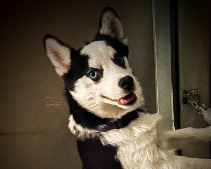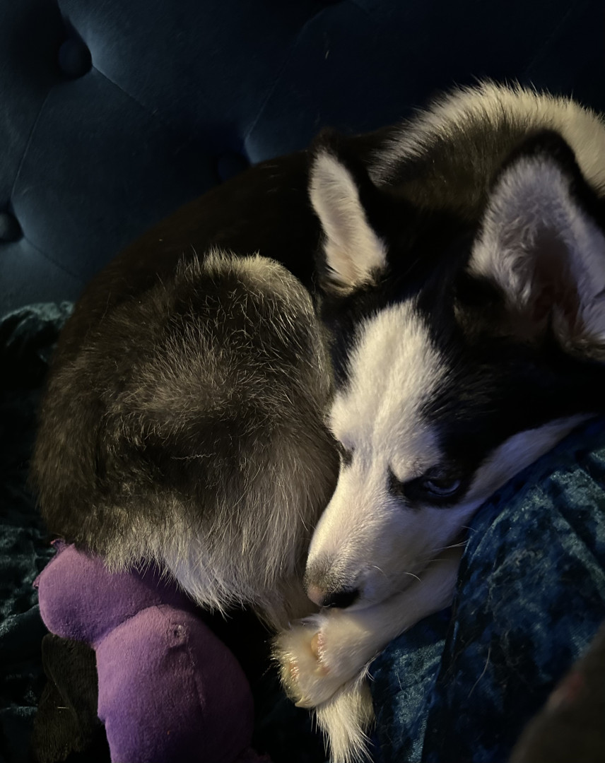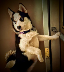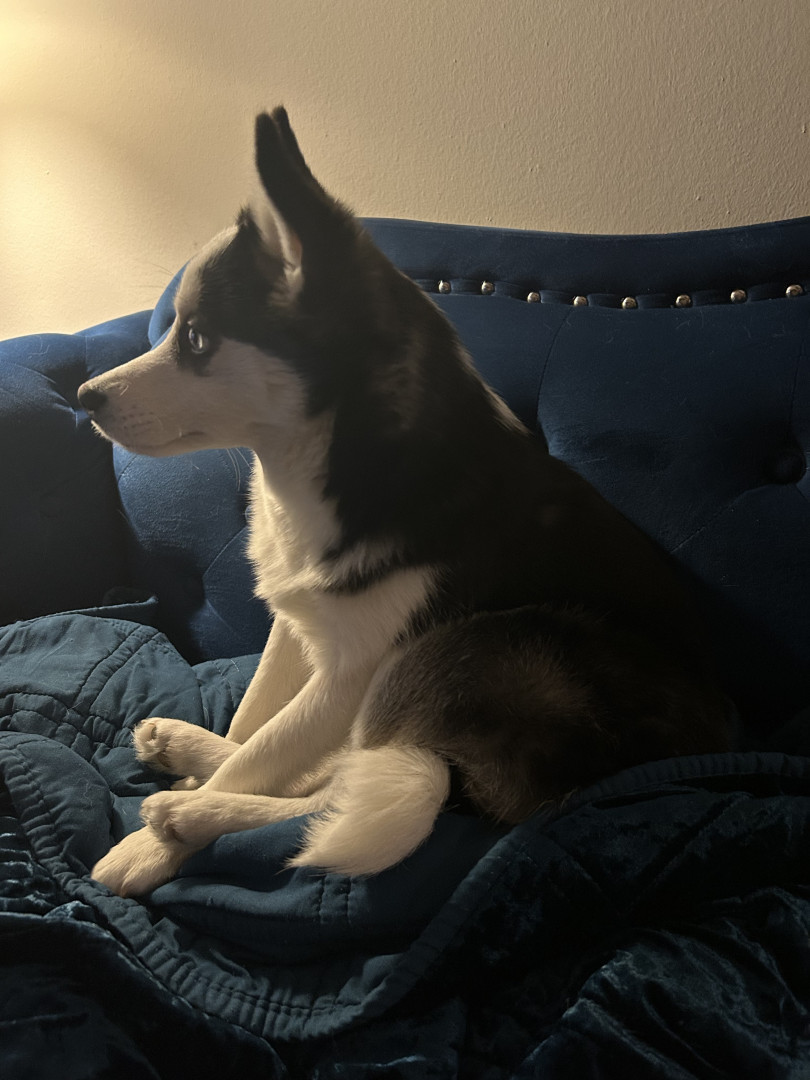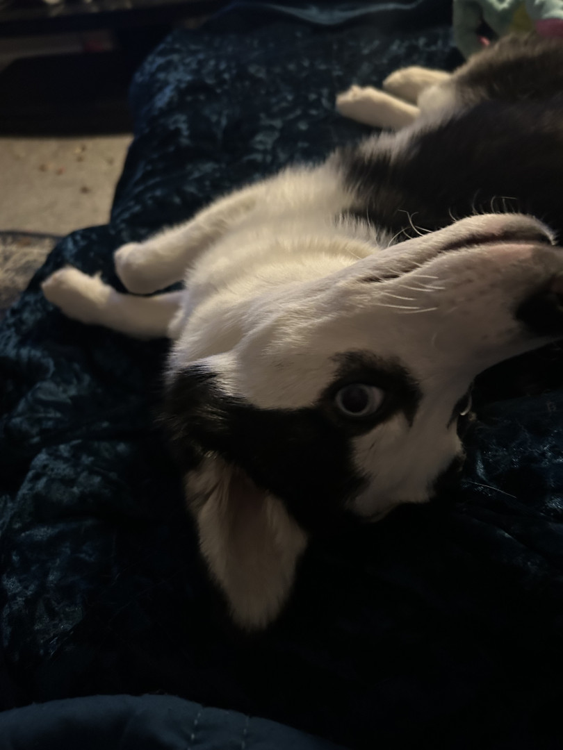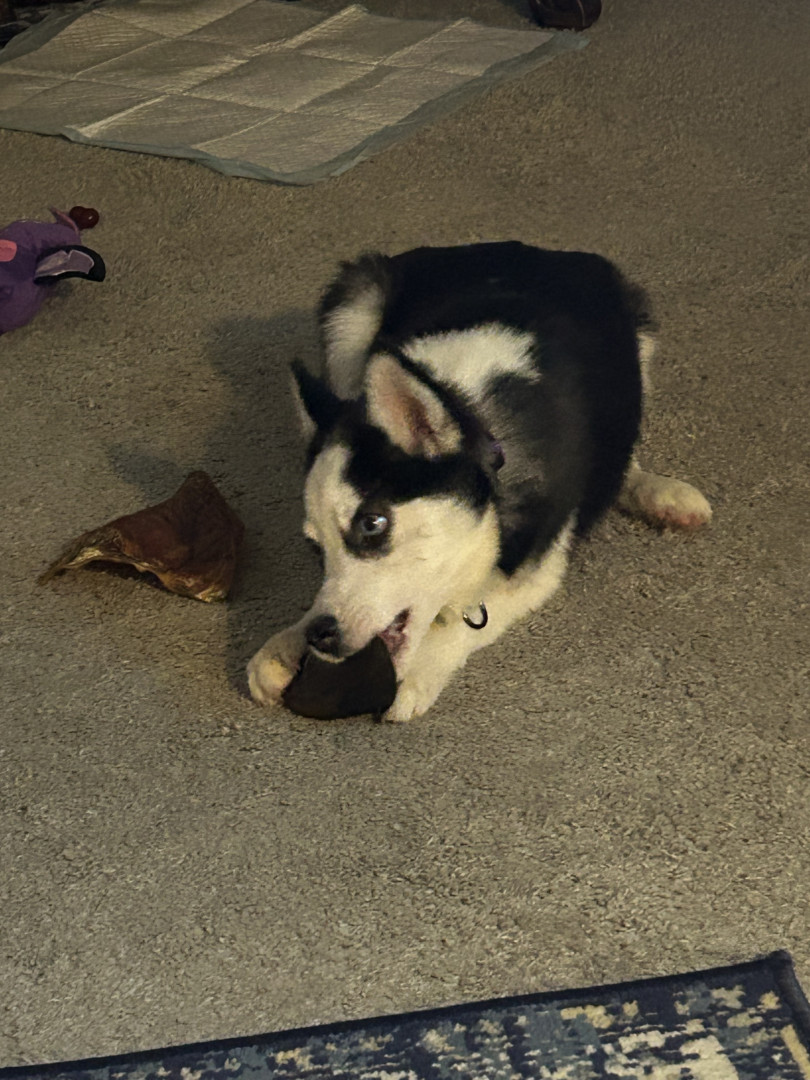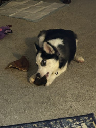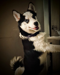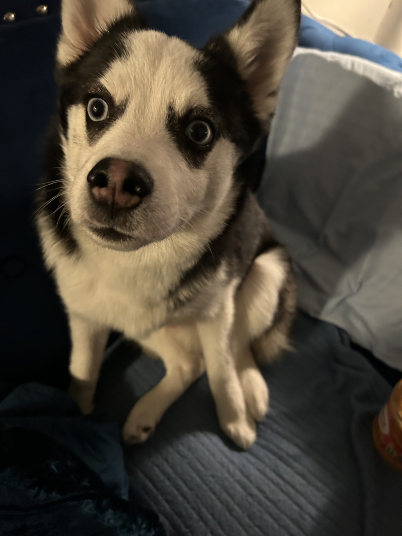 Foxy is a Pomsky hes 6 mo his nickname is Bubby and hes a cutie pie!He goes zooming like a bolt of lightning.Loves looking out the windows