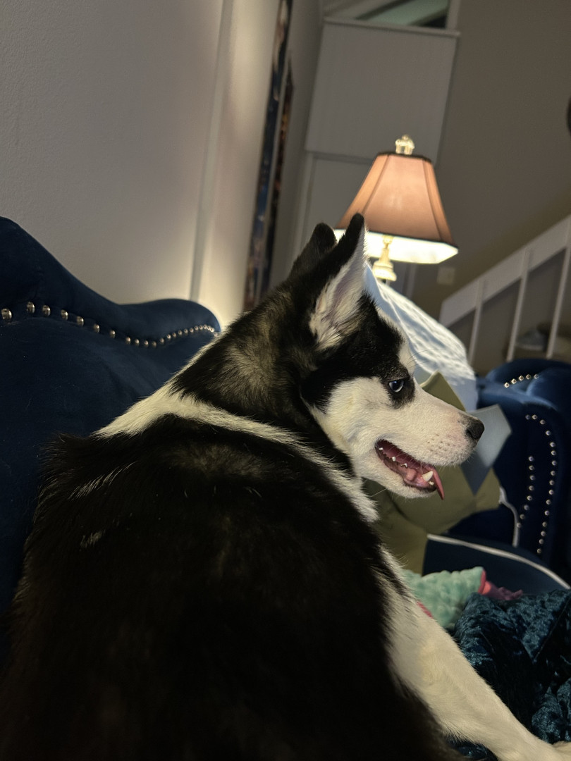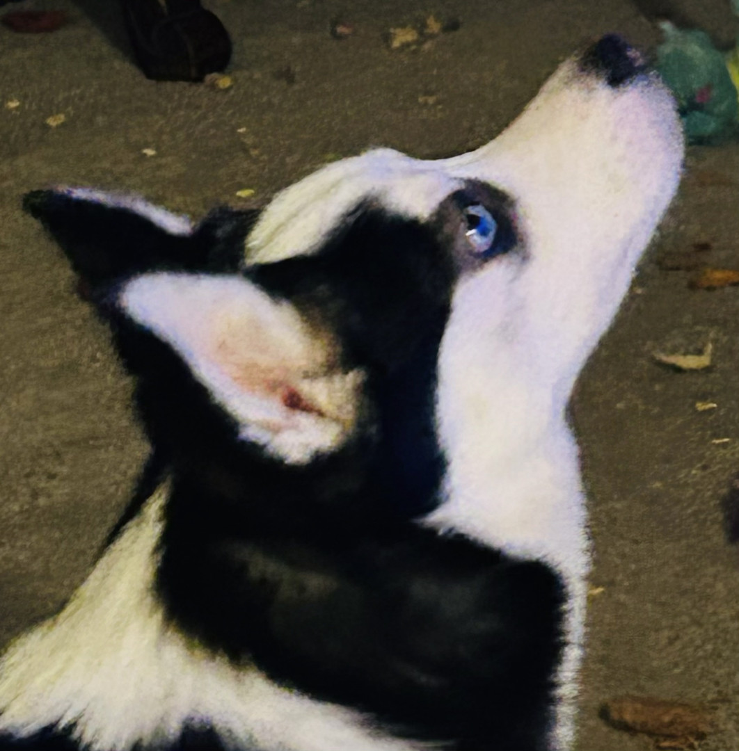 His personality is so funny he’s stubborn and he gives a side eye if he doesn’t like something. Hes a Gemini so he’s a know it all. He hides every single treat, like a squirrel, he’ll look all over for the specific one he wants. He also, whips his head and throws his ball, and goes after it. He makes his own fun!