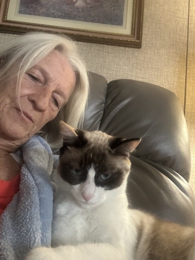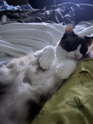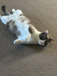 She is a very happy cat, even though she was found in a dumpster