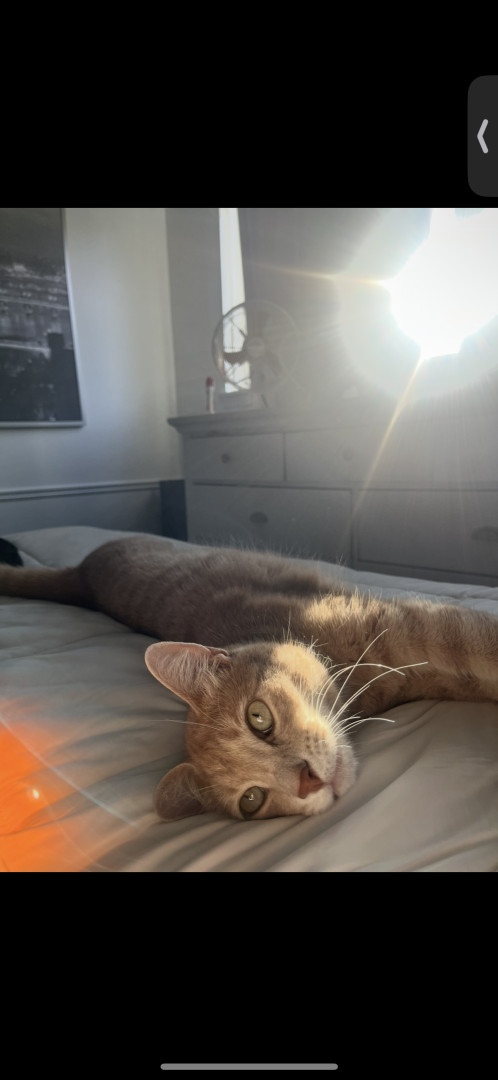 Frankie is a very loving, loud spunky cat that enjoys running around outside, cuddles and jumping in laundry baskets.