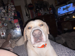 He is a very focused dog. His energy is by far unique. He acts like a little baby when he’s hurt and pouts when we get done playing . He definitely knows how to play the sad puppy card . Haha