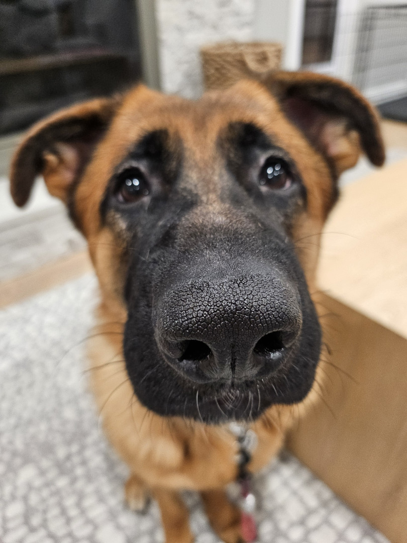 Frankie's most unique quality is that her facial expressions tell you everything. She smiles when she's happy, she gives droopy eyes when she's tired, she hangs her tongue to the side (and tilts her head) when she's confused, or she stares into your eyes to tell you she loves you.