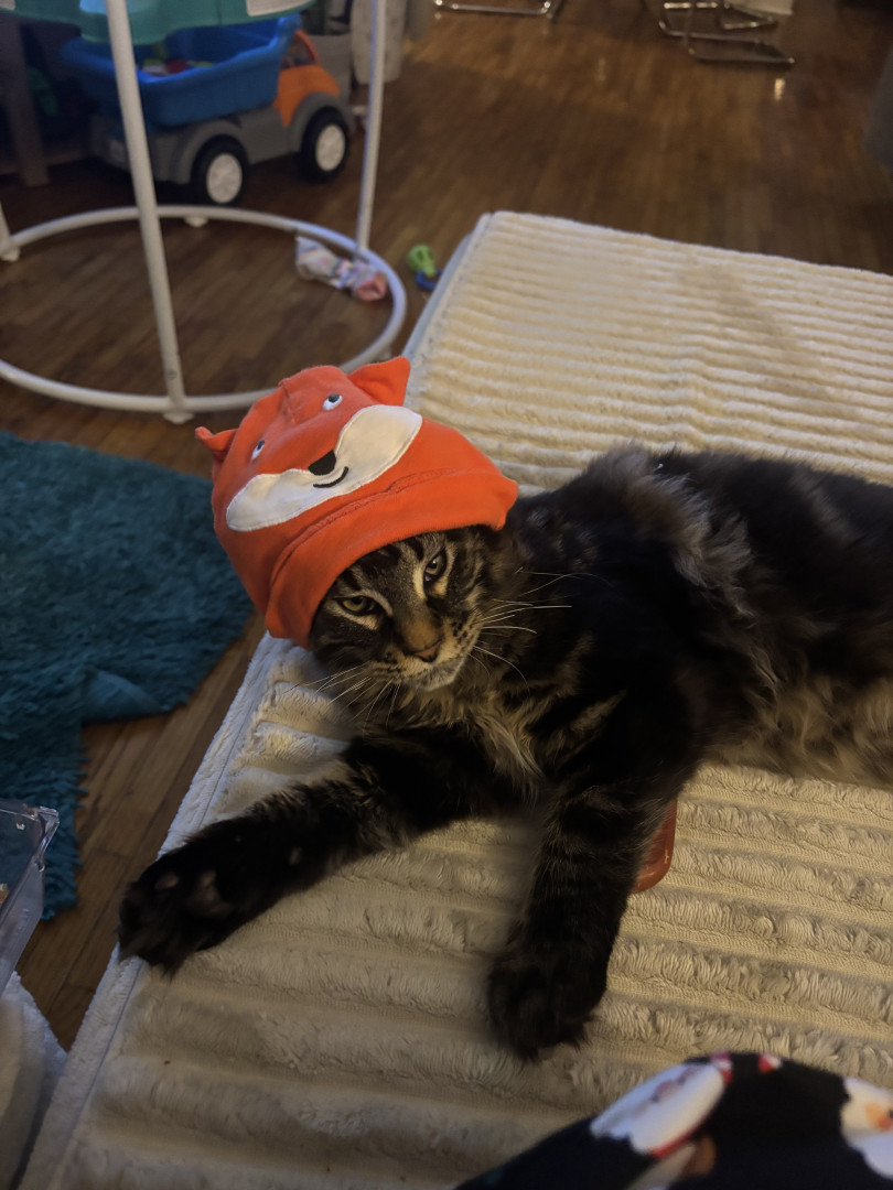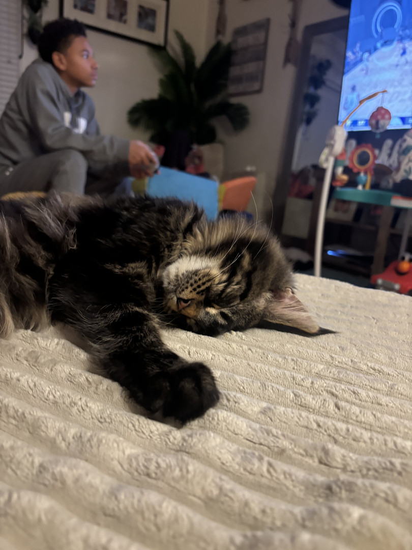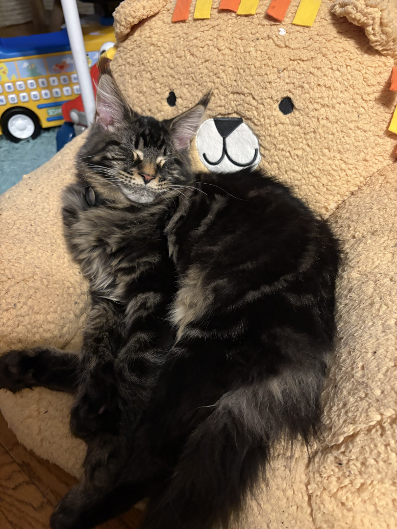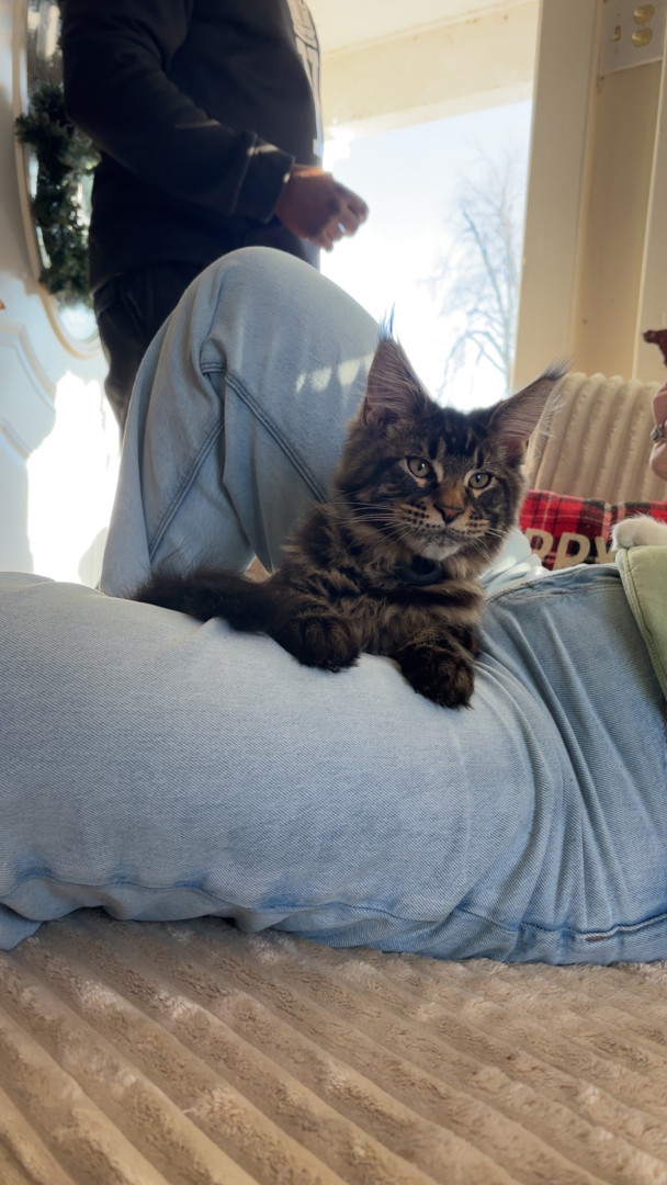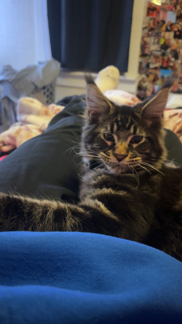 Frankie is a very energetic, but loving Maine coon.