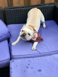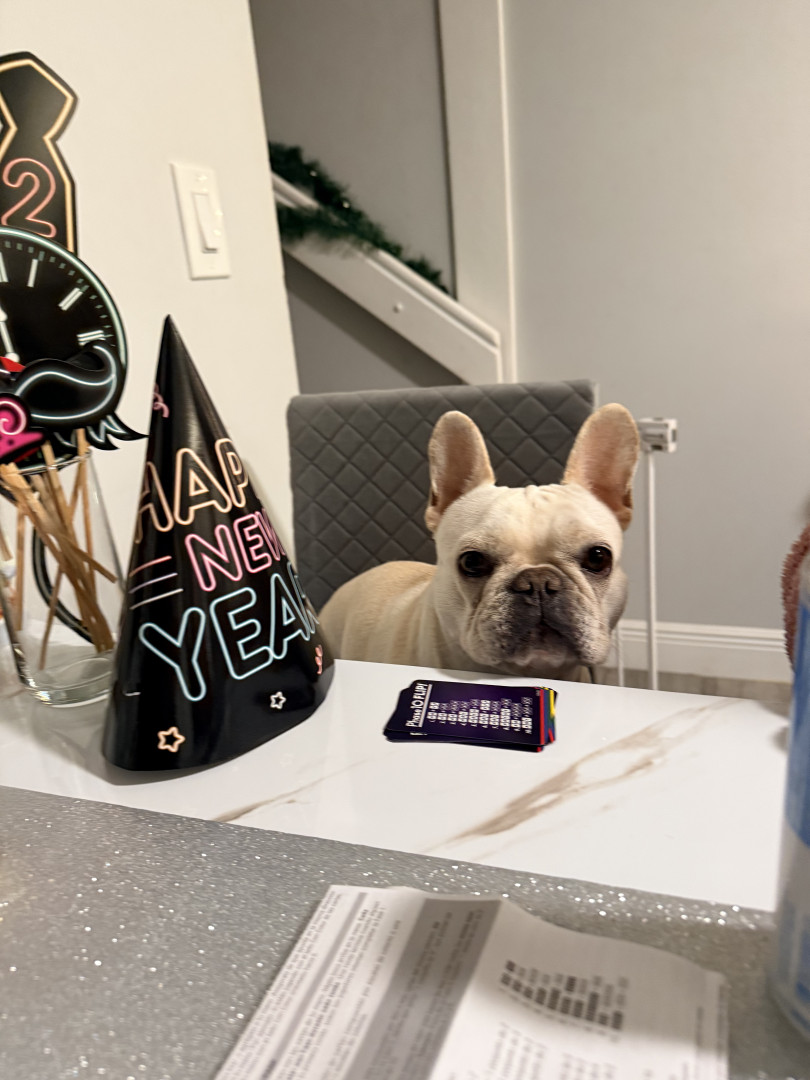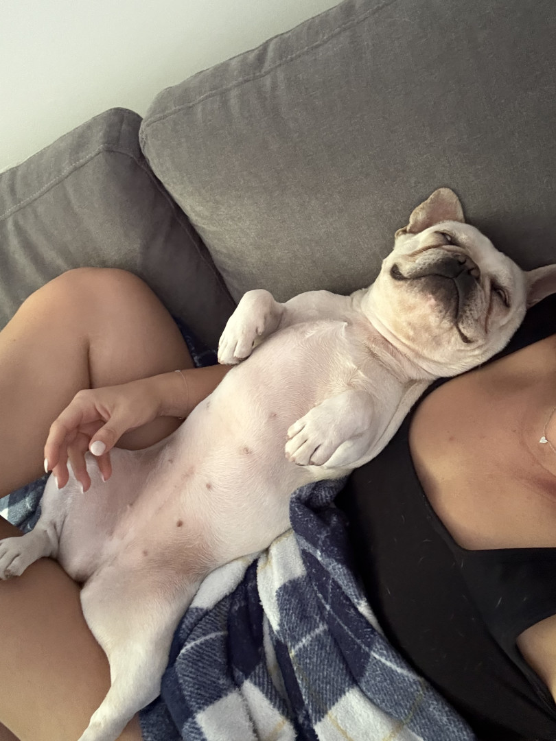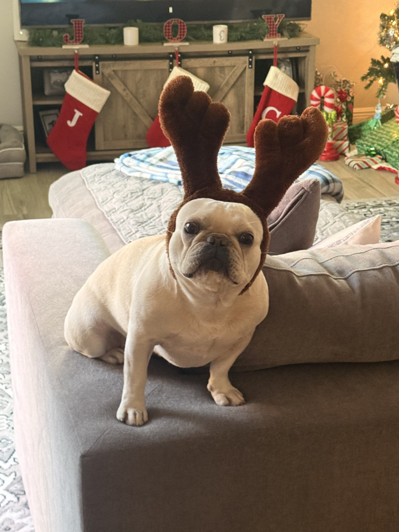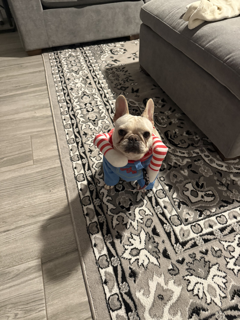 Meet Frankie!!!! She is a 2 year old AKC certified French bulldog. She is so lovable but also very stubborn. Also very motivated by food.