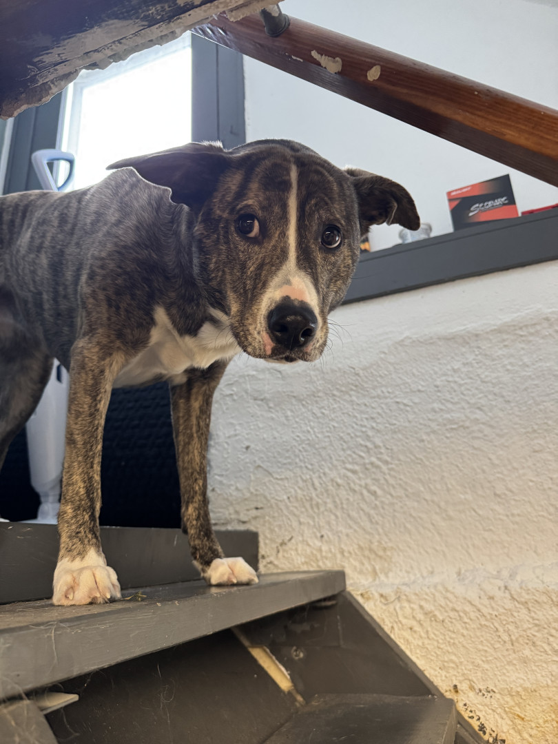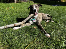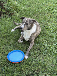 Frankie is the sweetest big baby you’ve ever met. She loves snuggling and being cozy, playing frisbee and her favorite food is cheese.