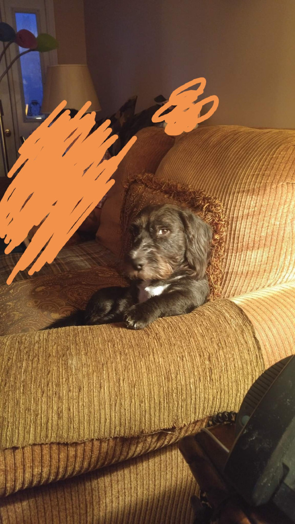 We took Franklin off the street when he was maybe weeks old. He was so small and weak. Once he grew a bit we noticed his two front legs were twisted and really short. The vet said he was not in any pain. So we could just leave him and see as he grew. When he runs he will sometimes tumble on his head. So we says he was dropped on his head once to often and isn't all there. He is out little idget. He is a real charmer. And he loves to love. He loves everyone.