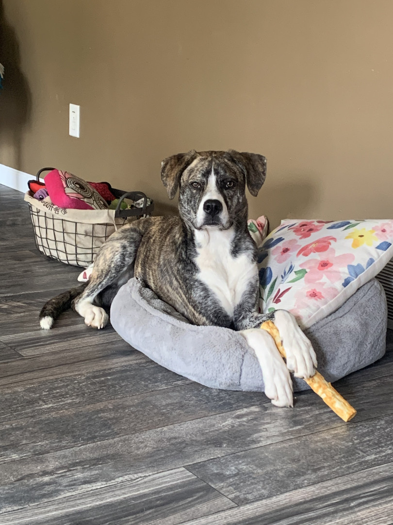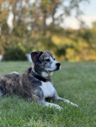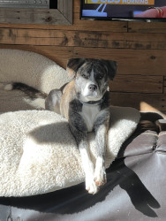 Franklin is a very unique dog; he has to hold your hand in the car. He smiles when he wakes up in the morning or when he is super happy to see you. He pokes you with his nose when he wants something, he prefers to poke me in the butt when I am doing dishes or standing in the kitchen. He cannot run and bark at the same time, it's so funny to watch him run and then stop put is head straight up in the air and bark. When he is excited and runs really fast, he tends to prance like a deer.