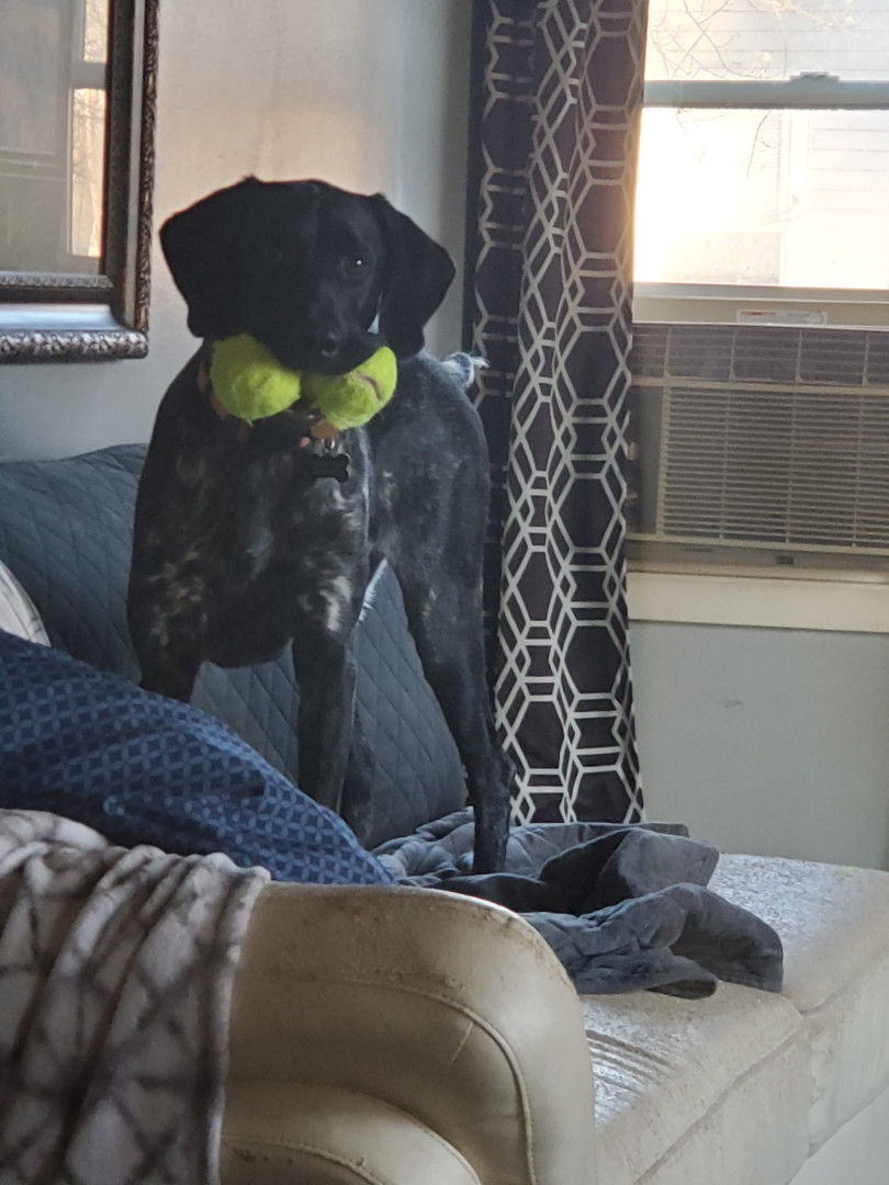 Fred is a goof ball. He has diabeties and is now blind, but that does not stop him from playing with his brother and sister. Hes just a very