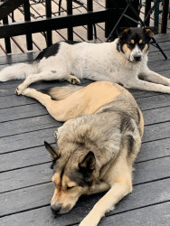 Cause Freddie is just a great guy who loves everyone and he actually smiles and shows his friendly teeth when he greeets strangers. We love him and our big guy Huskie, Dmitri!