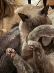 Freja is a chatty, cuddly, and sassy blue point Siamese. She has a big personality and loves her family with her whole heart.