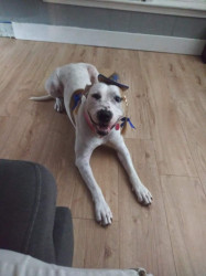 She is a 6 yr. Old pitbull. She is completely deaf and knows sign.language commands that I have taught her. Very playful.