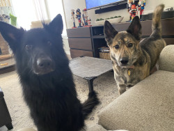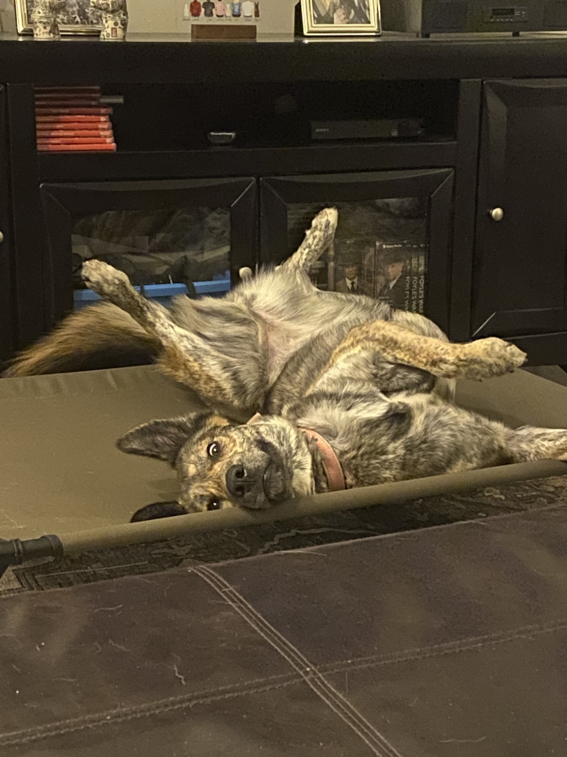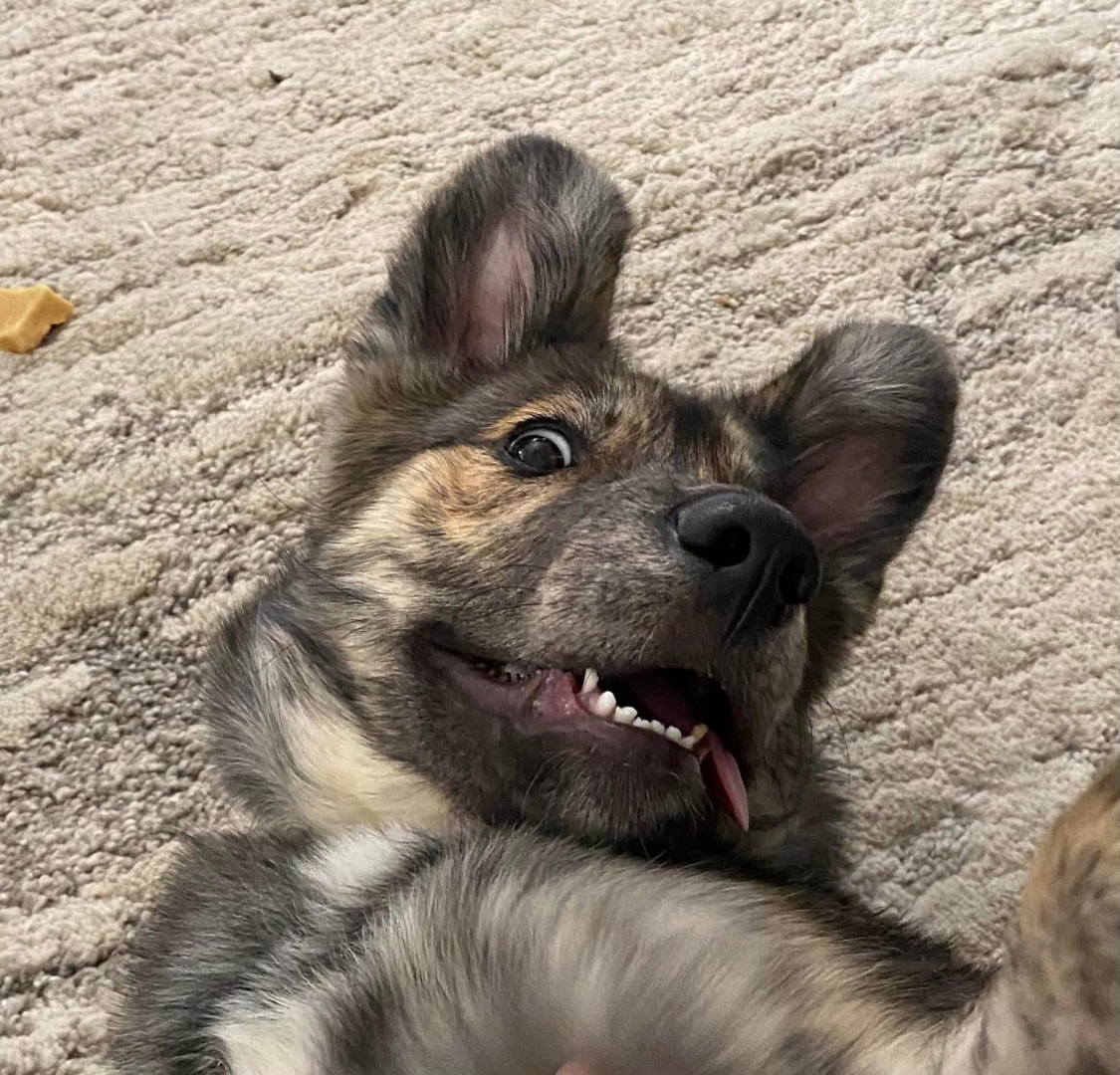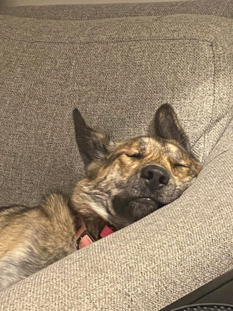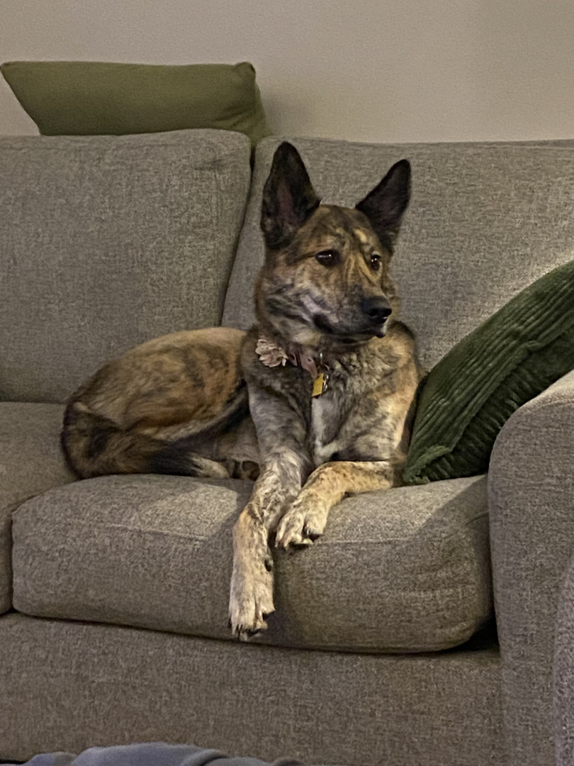 She’s a Huskita. She’s part Husky, Akita, and Golden Retriever. She loves her paws and head petted. She really is super sassy and full of personality.