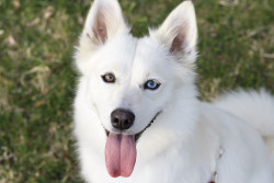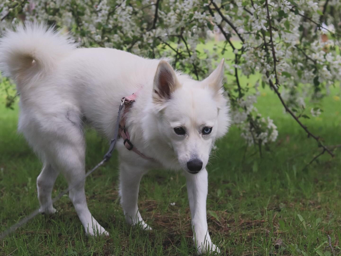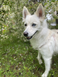 Her mismatched eyes stop people in their tracks, but it’s her personality that wins them over—sweet, curious, and always ready to curl up like a little arctic fox right at your feet.