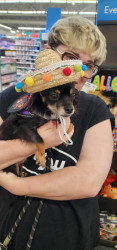 Freya—6wk rescue Pomchi, self-trained service star. Goodwill + guitar store VIP, blankie burrower, raw-liver fiend, bath-time diva.