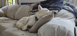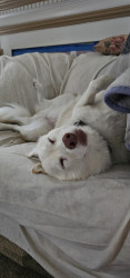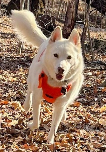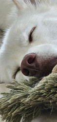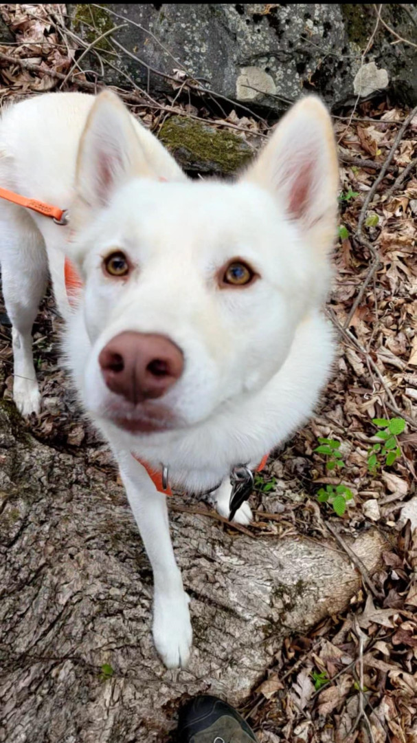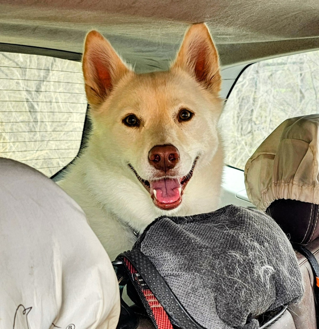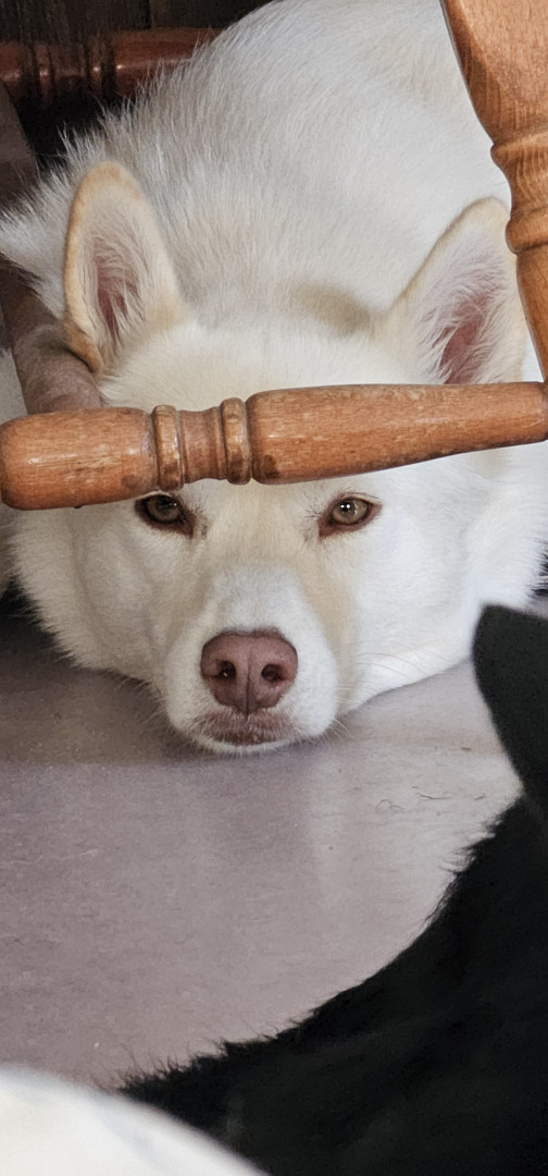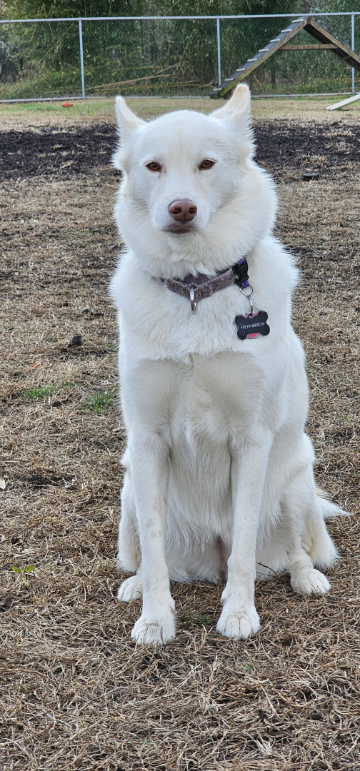 Freya is such a sweet dog. She comforted me after passing of my previous dog. She goes with me on adventures or is happy sitting at home in the sun. When at the dog park, she sits like a royal princess watching everyone and then gets her silly on and starts running around making sure she avoids any mud or water puddles so she doesn't get wet or dirty. She loves sniffing all the recycle bins on our walks. She alerts me when rabbits invade the yard and keeps me warm at night. She's my girl.