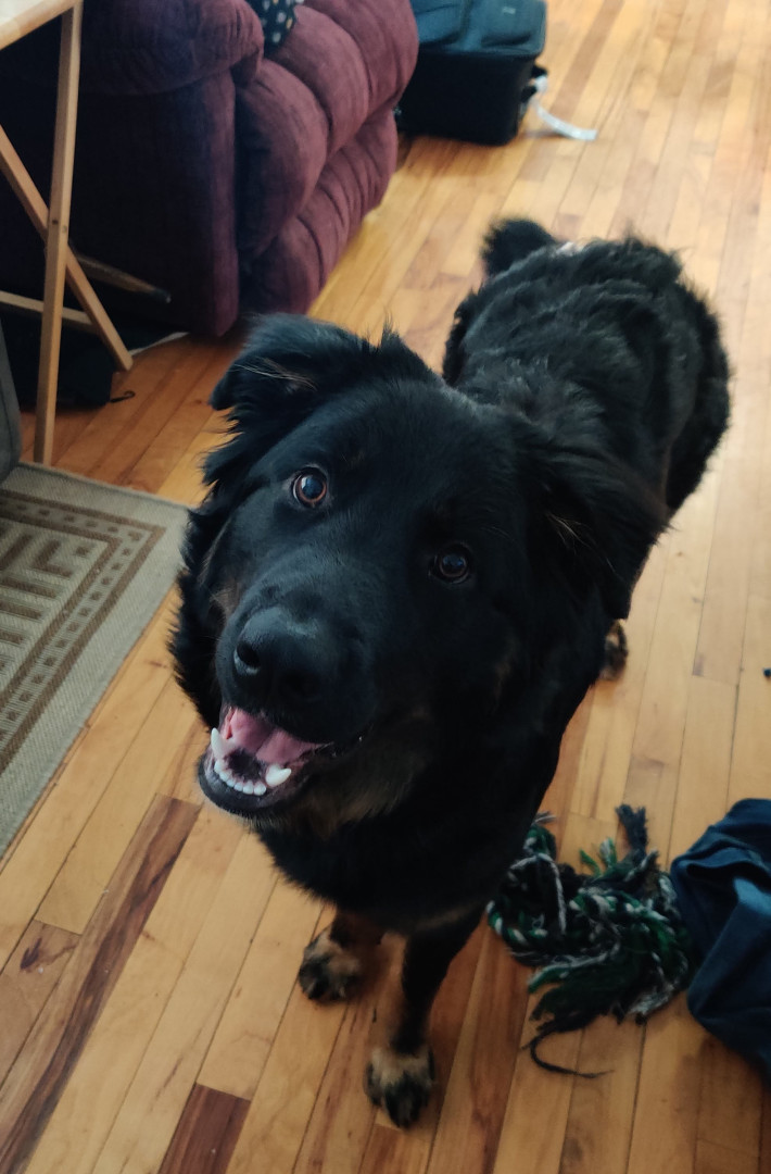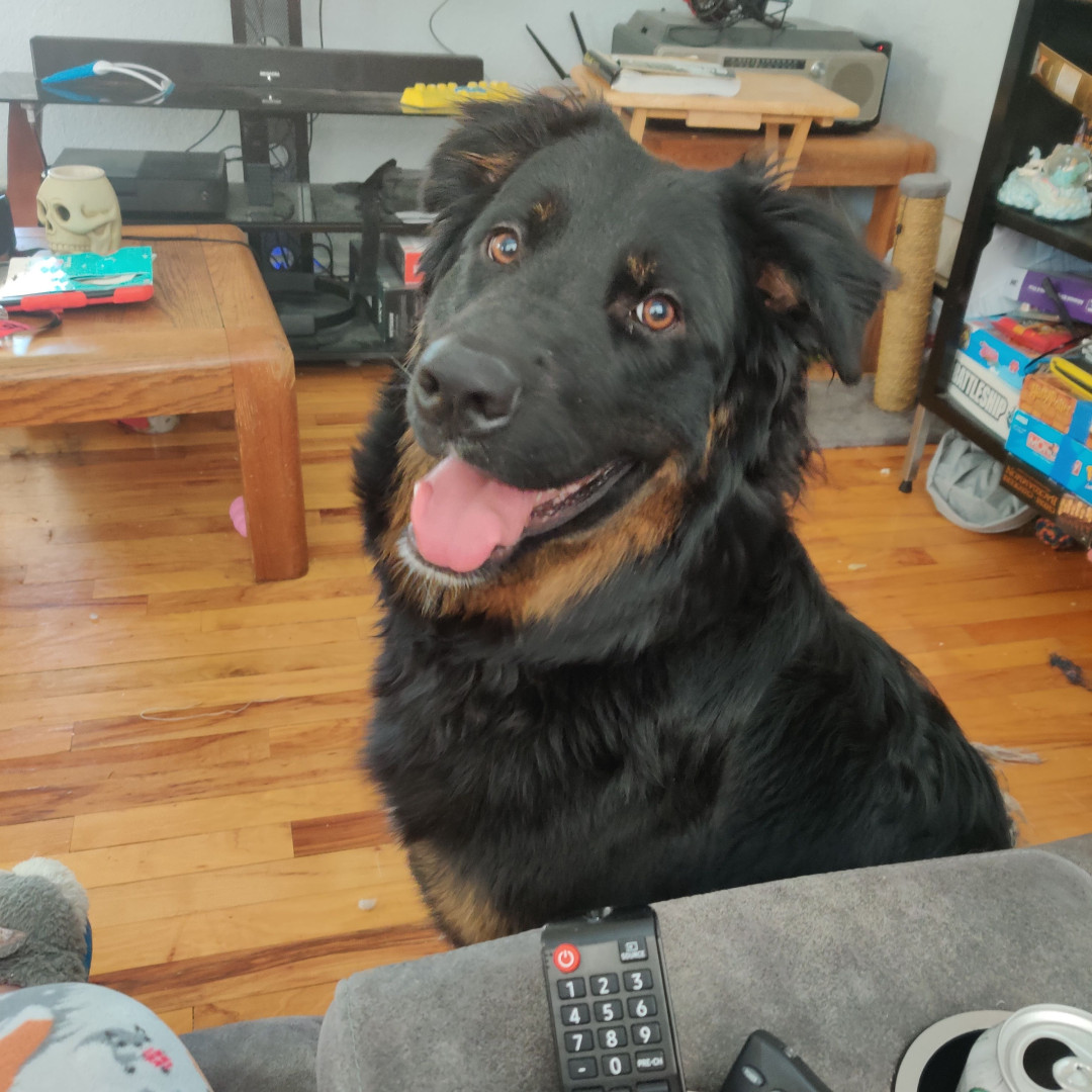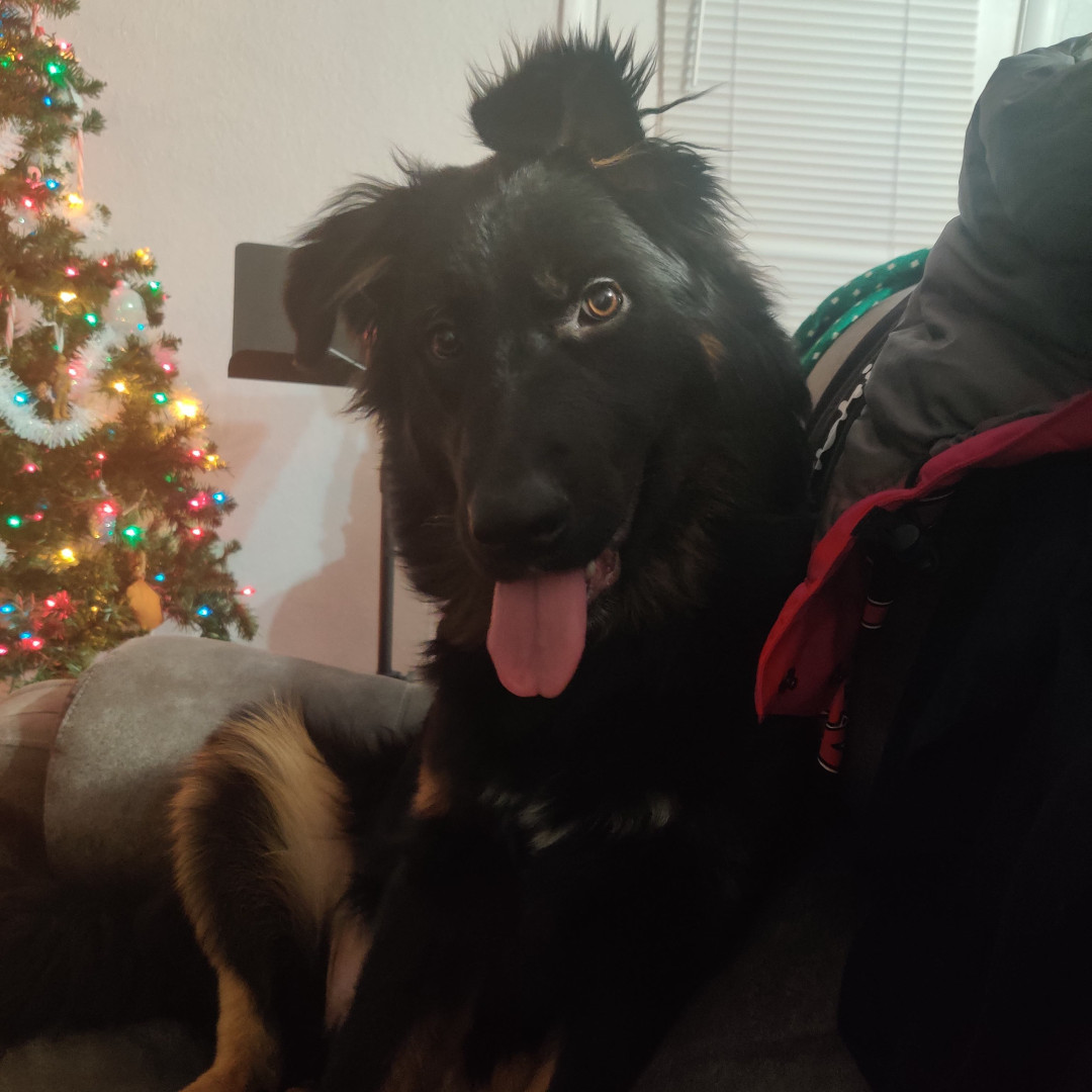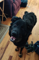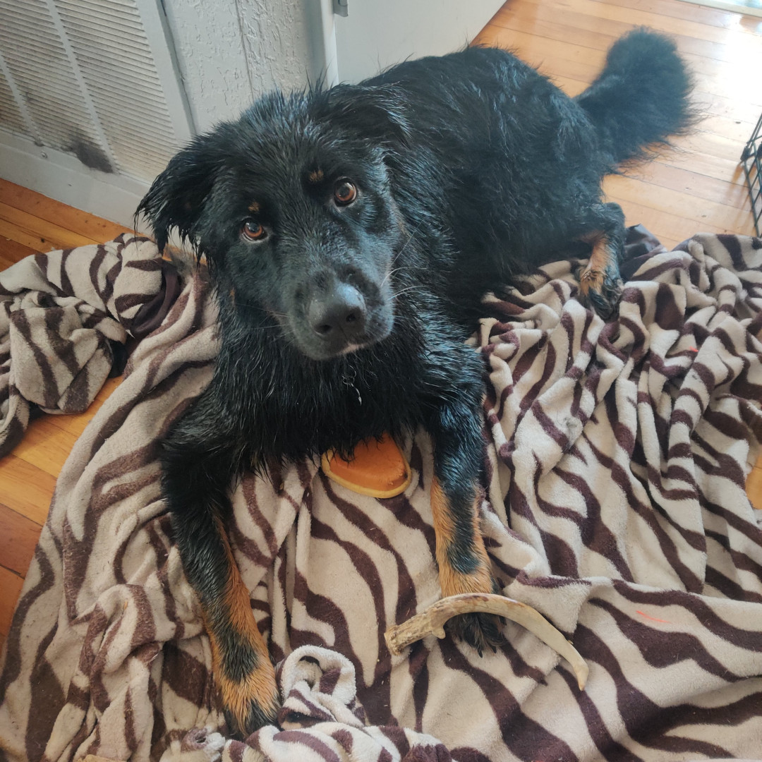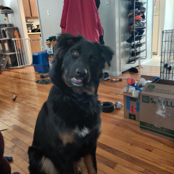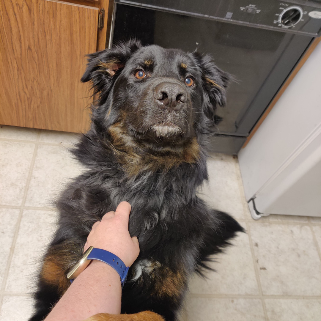 Freyja is a 4 year old Bernese mountain/German Shepherd mix. She is goofy, loves snow, belly rubs, and car rides, and is a big softie.