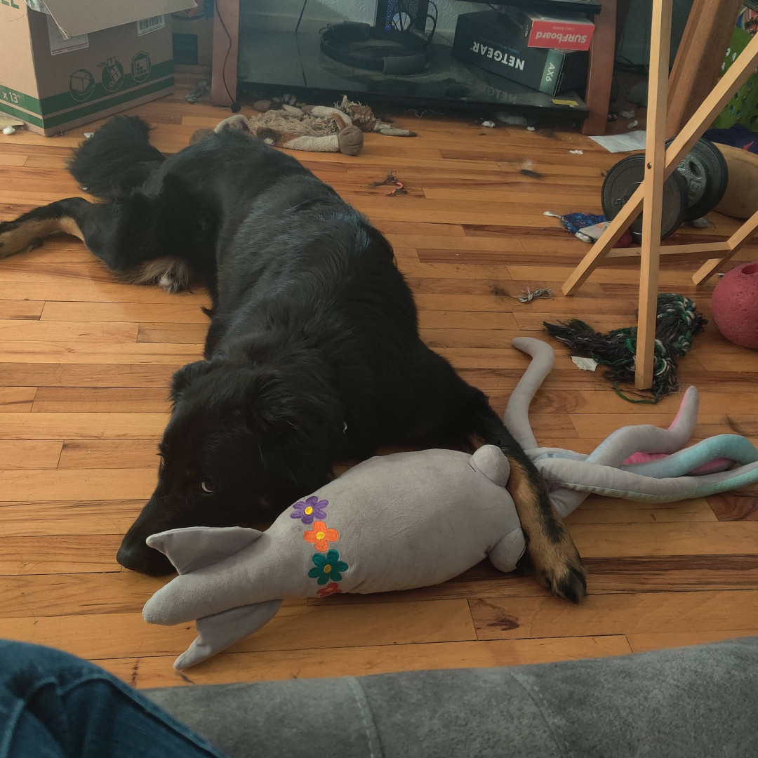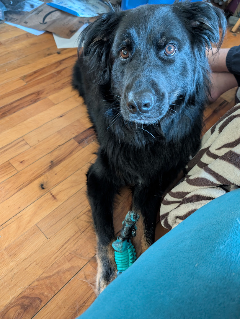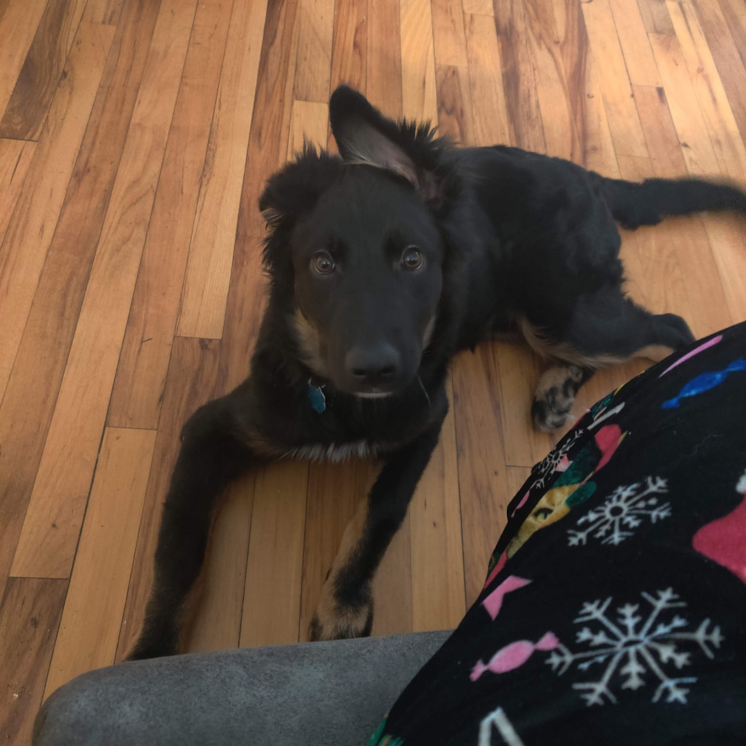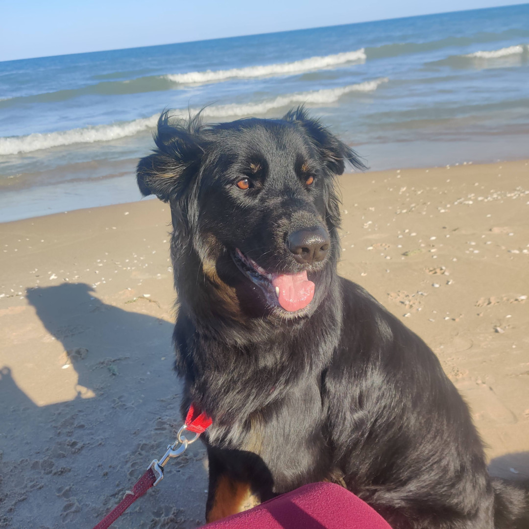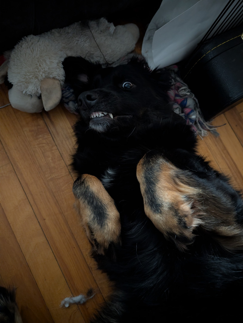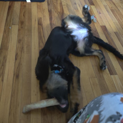 Freyja is a 4 year old Bernese mountain/German Shepherd mix. She is goofy, loves snow, belly rubs, and car rides, and is a big softie.