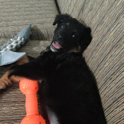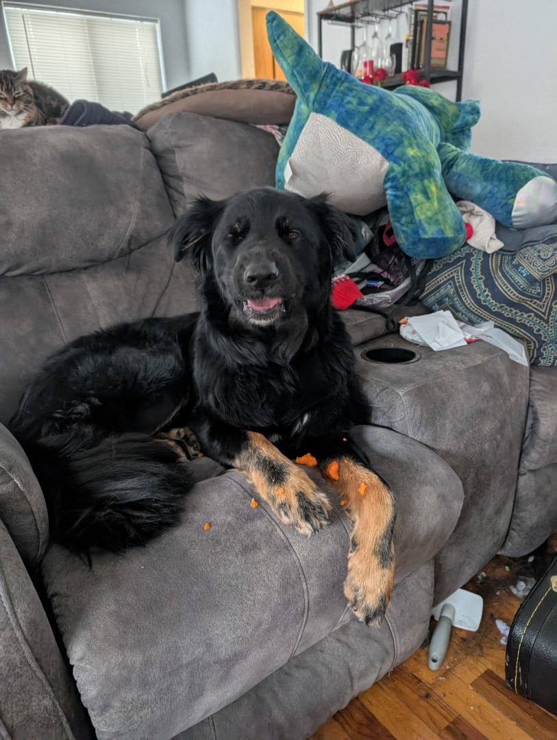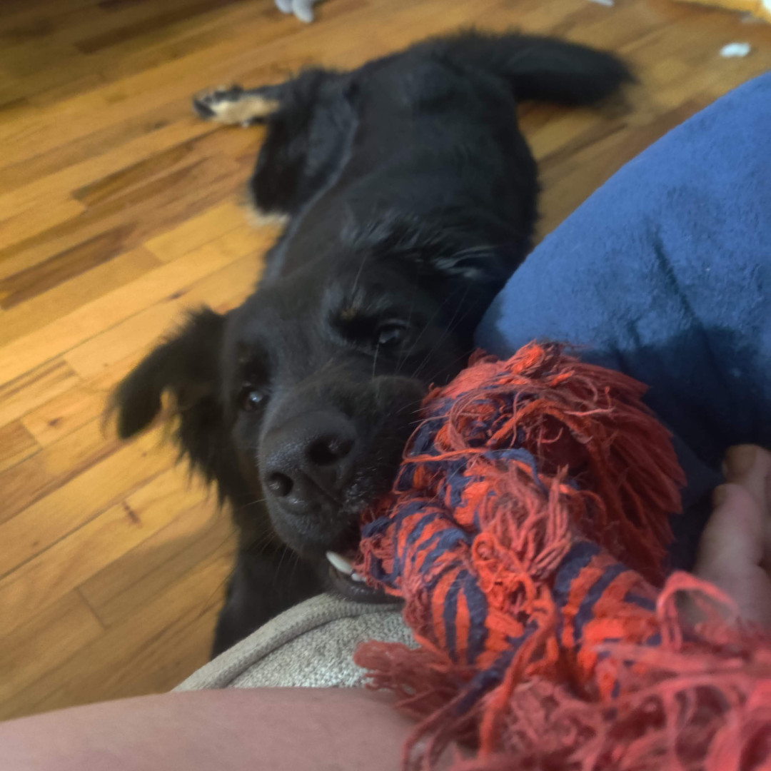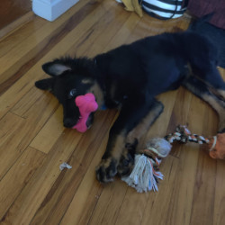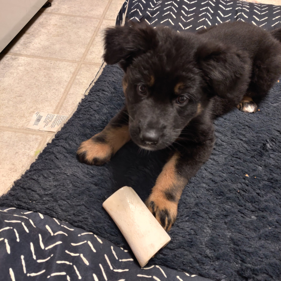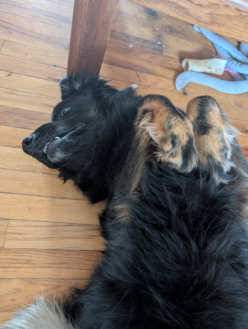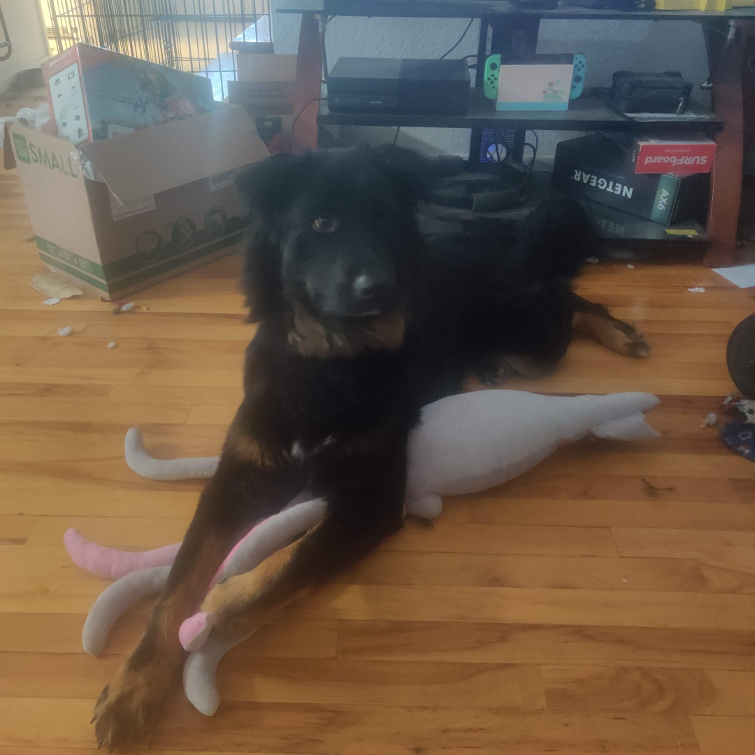 Freyja is a 4 year old Bernese mountain/German Shepherd mix. She is goofy, loves snow, belly rubs, and car rides, and is a big softie.