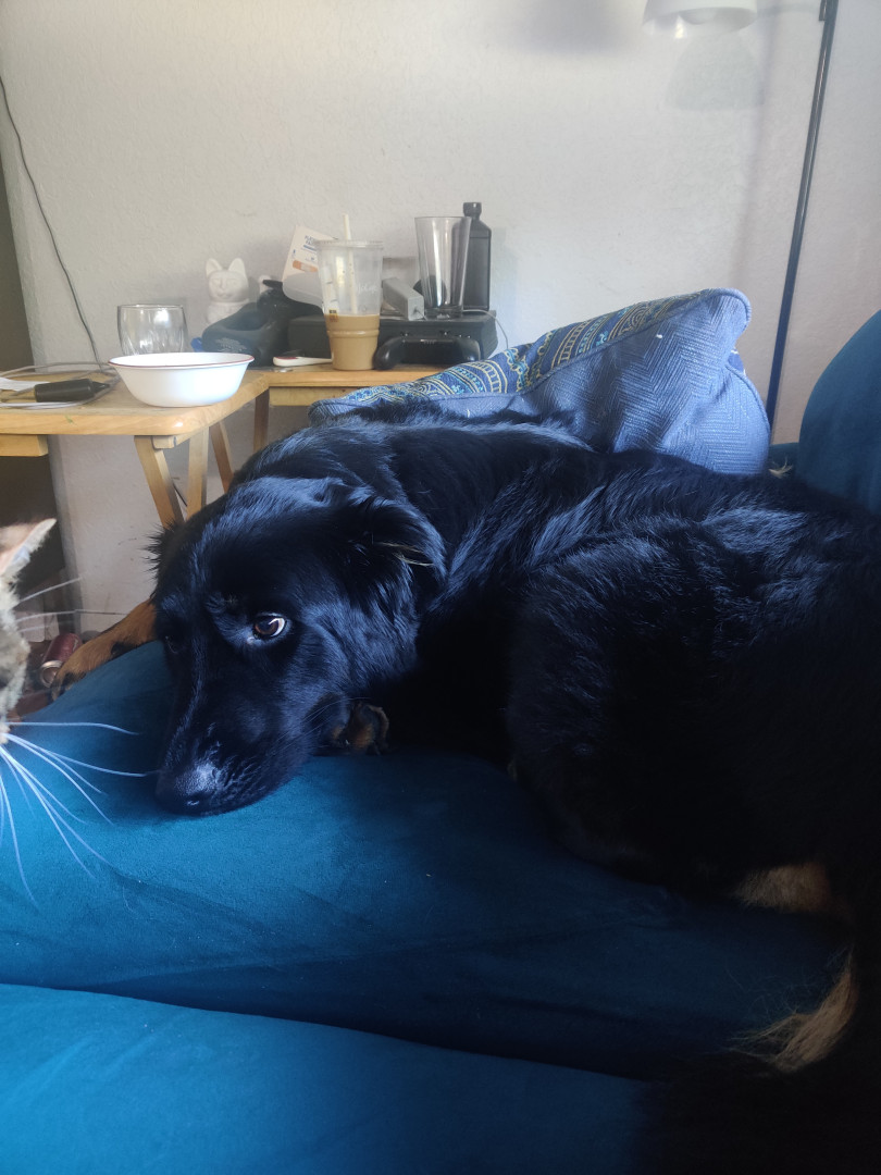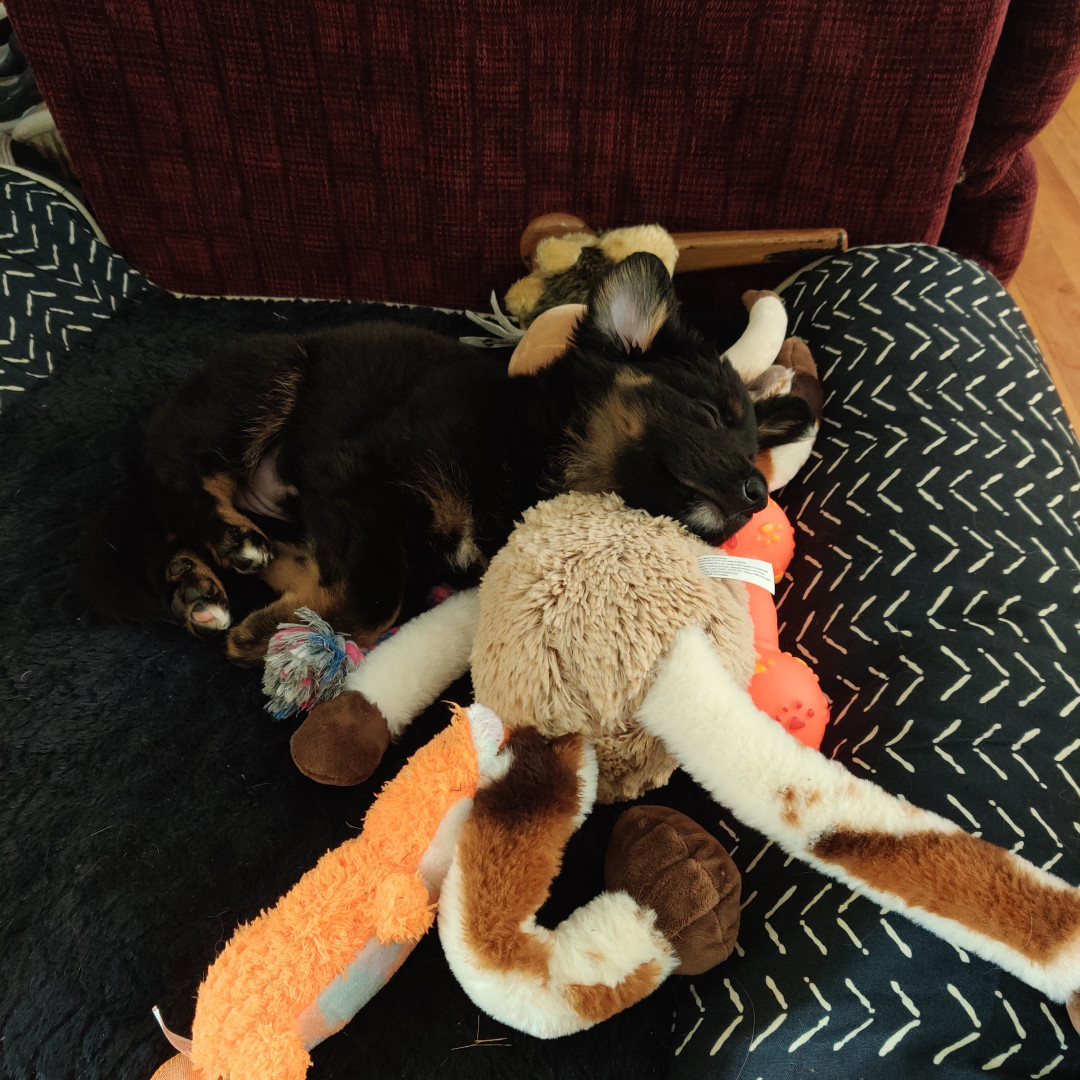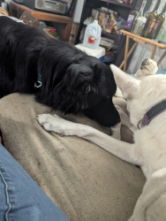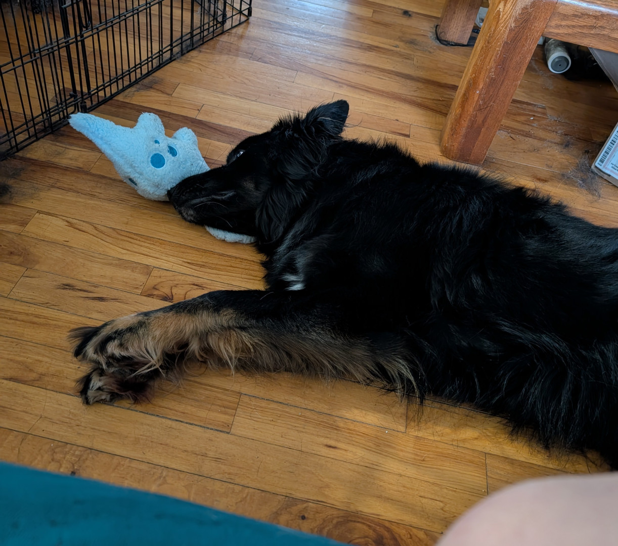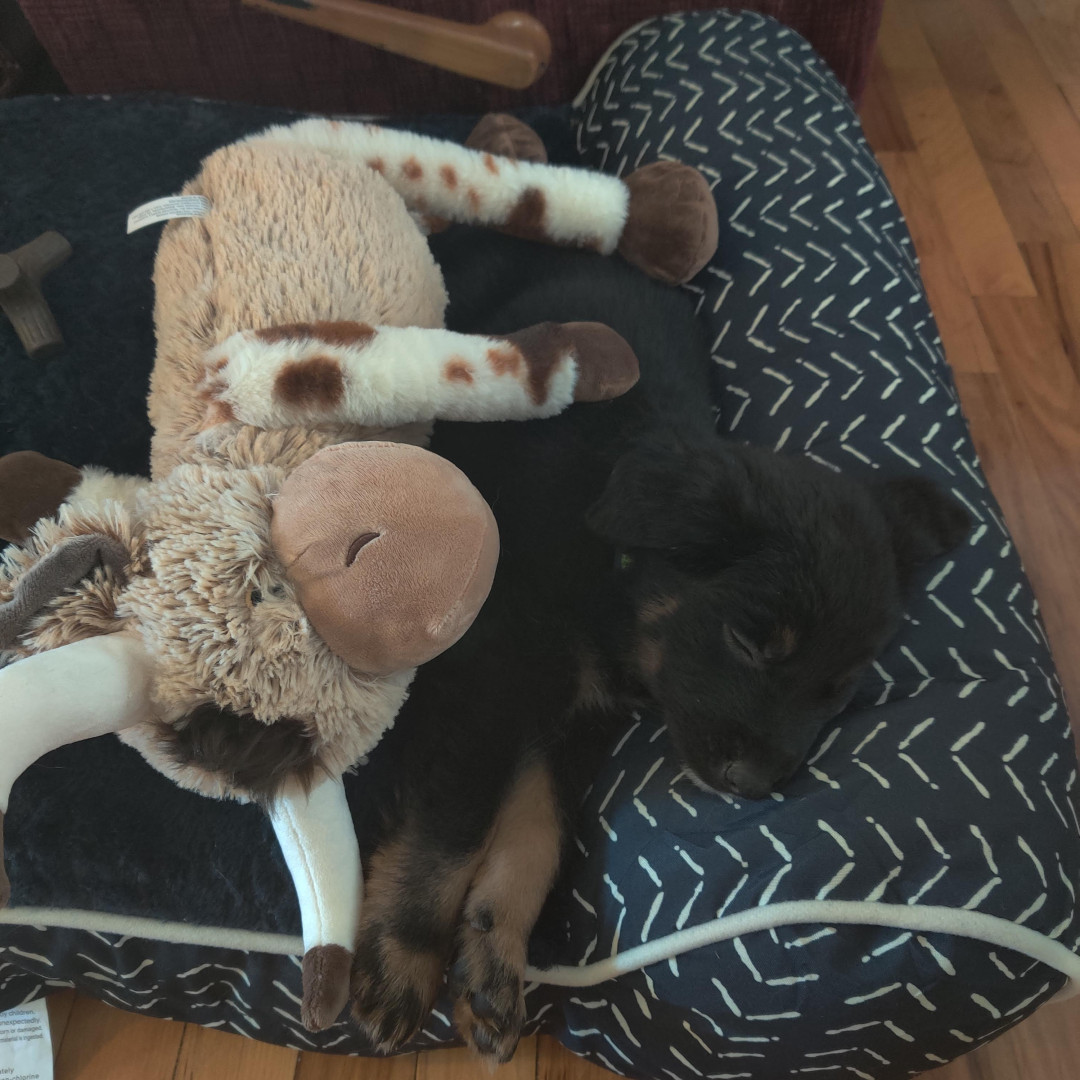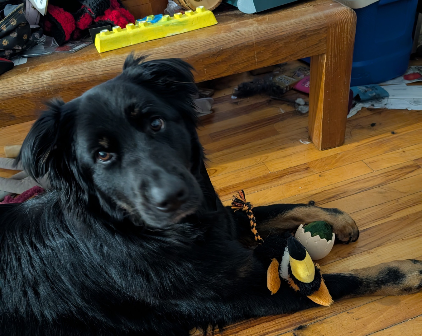 Freyja is a 4 year old Bernese mountain/German Shepherd mix. She is goofy, loves snow, belly rubs, and car rides, and is a big softie.