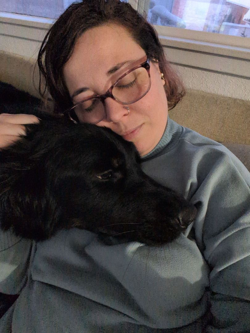 She loves getting hugged, squeezed, and cuddled more than most anything we do for her. She's an incredibly cuddly dog!