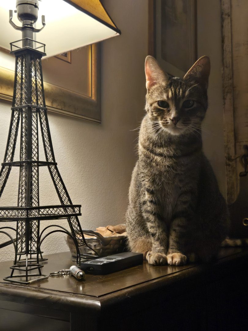 As a kitten, Frito traveled with my daughter to Seattle twice. Frito would watch my daughter open drawers to get dressed and open the door to leave. So, you guessed it. Frito opens the door to let herself out or in. She also opens drawers when curiosity calls. Intelligent enough to mimic a human is her unique quality.