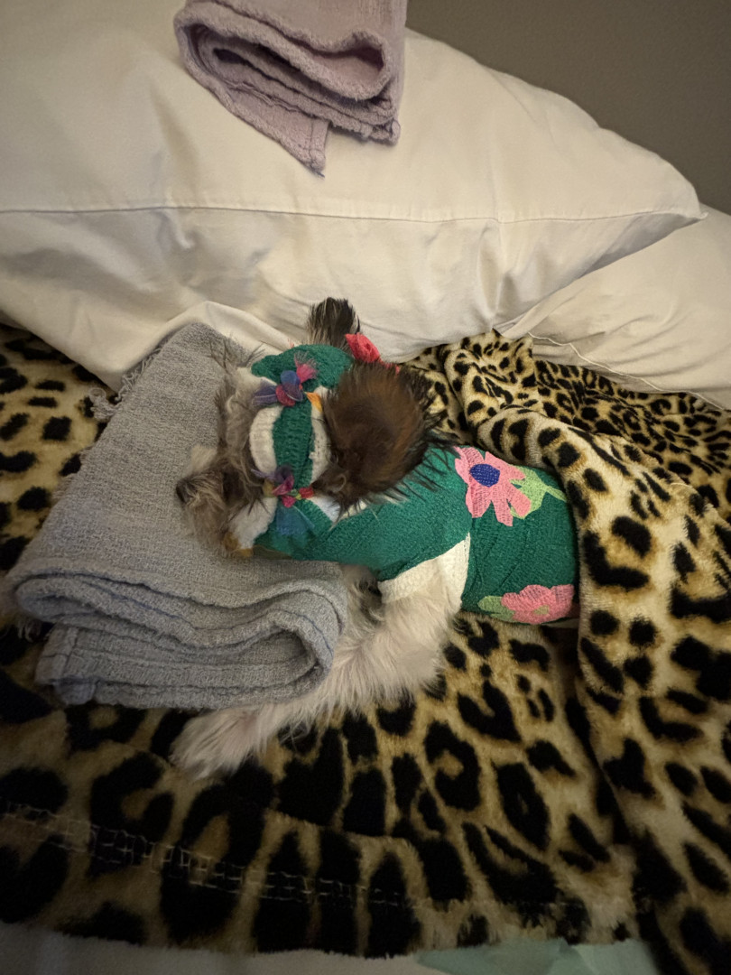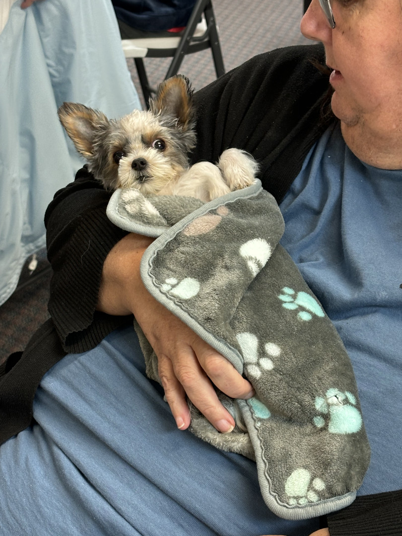 6mo. Yorker. Full of life. Recent surgery to connect spinal cord to skull. She’s been a trooper thru everything. ❤️