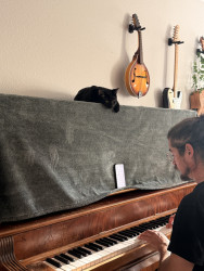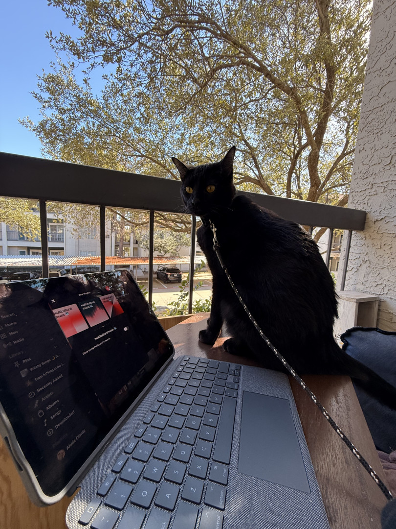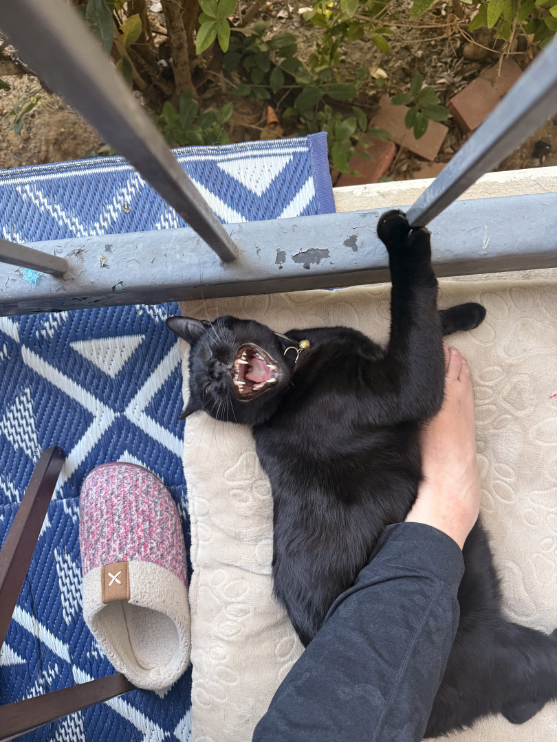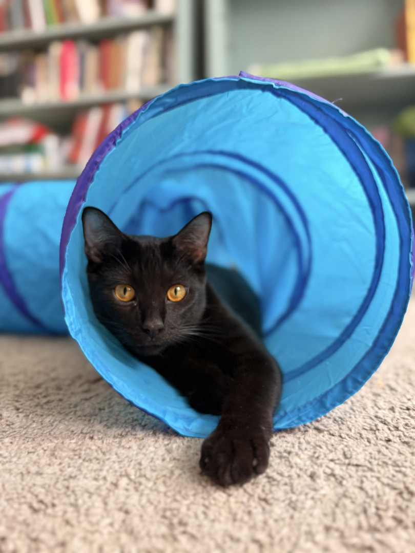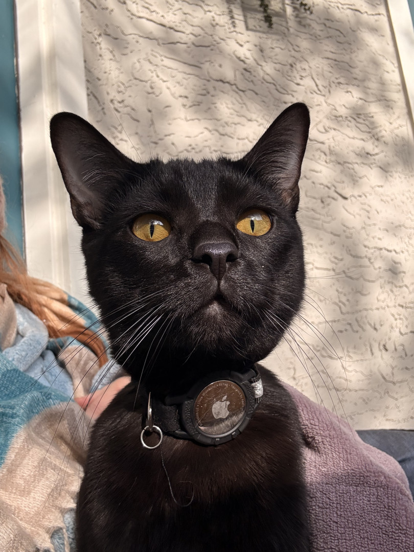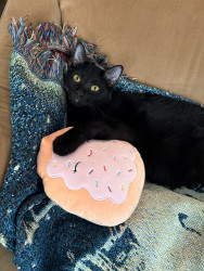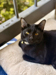 If an animal can be known for their sweet personality, that’s Gaius. He’s never met a stranger; he sleeps at our feet and waits for the alarm before face cuddles; he gets excited when we pull up to his cat friend’s house; he watches the sunrise on the patio with us; he pulls your face closer to his so he can touch noses; he sits in your lap while video gaming; he lounges while you play the piano; and he loves to talk!
